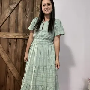 This lightweight, short-sleeve, V-neck boho dress is designed for comfort and style, making it perfect for warm weather.