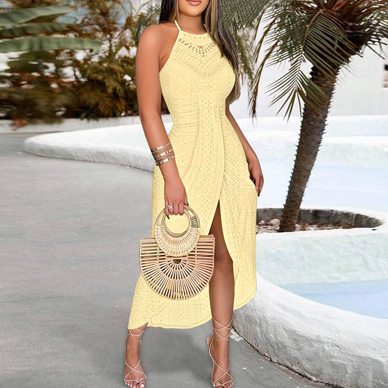 ·Stylish Halter Neck & Hollow-Out Detail The chic halter neck and hollow-out design give this maxi dress a modern, sophisticated appeal, perfect for summer vacations or special outdoor events.