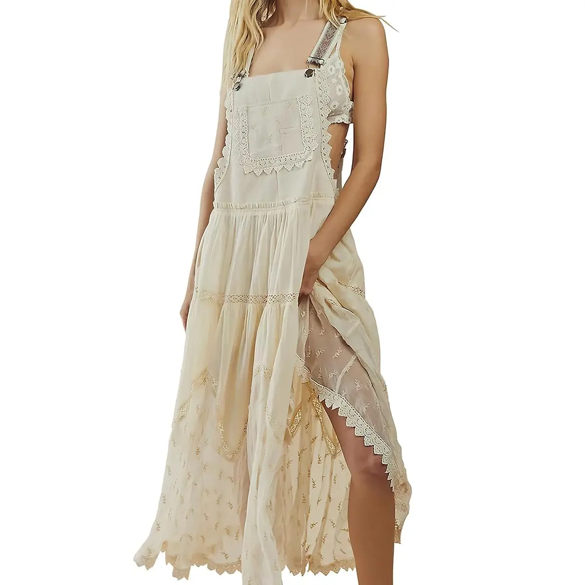 ·Design: This novelty summer beach boho dress, bib style combine with lace and embroidered tulle piecing hem make this item more vintage and trendy.