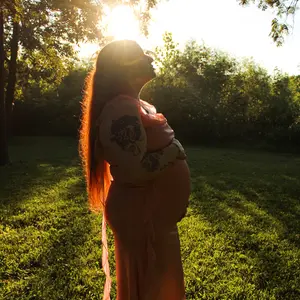 Little see through so I recommend shorts underneath but super stretchy and soooooo comfortable. Wore for my maternity shoot and it was so beautiful!!