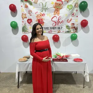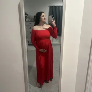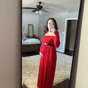Perfect for a Christmas themed gender reveal dress! Added a belt to emphasize the bump. Highly recommend!