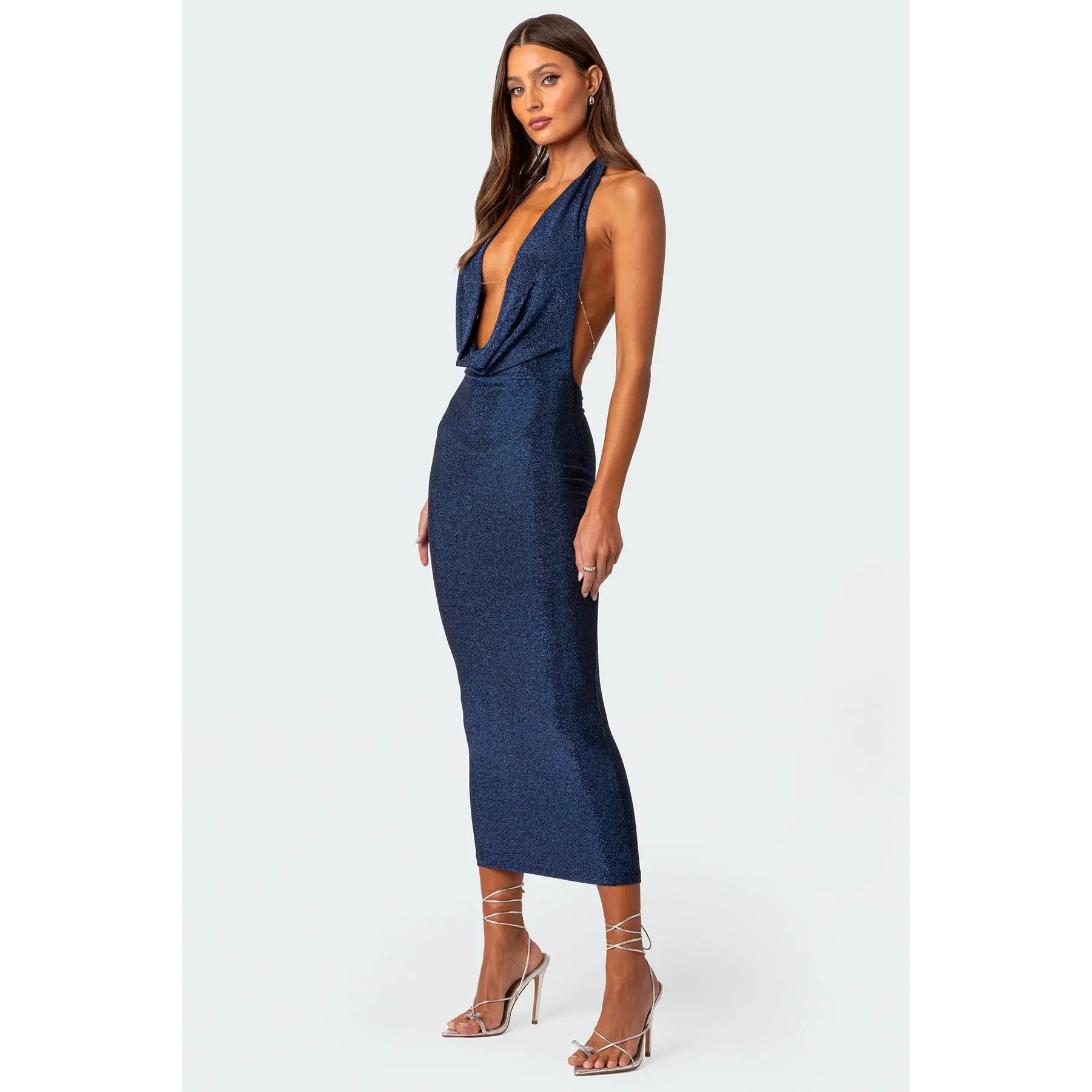 Cowl Neck Open Back Maxi Dress