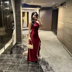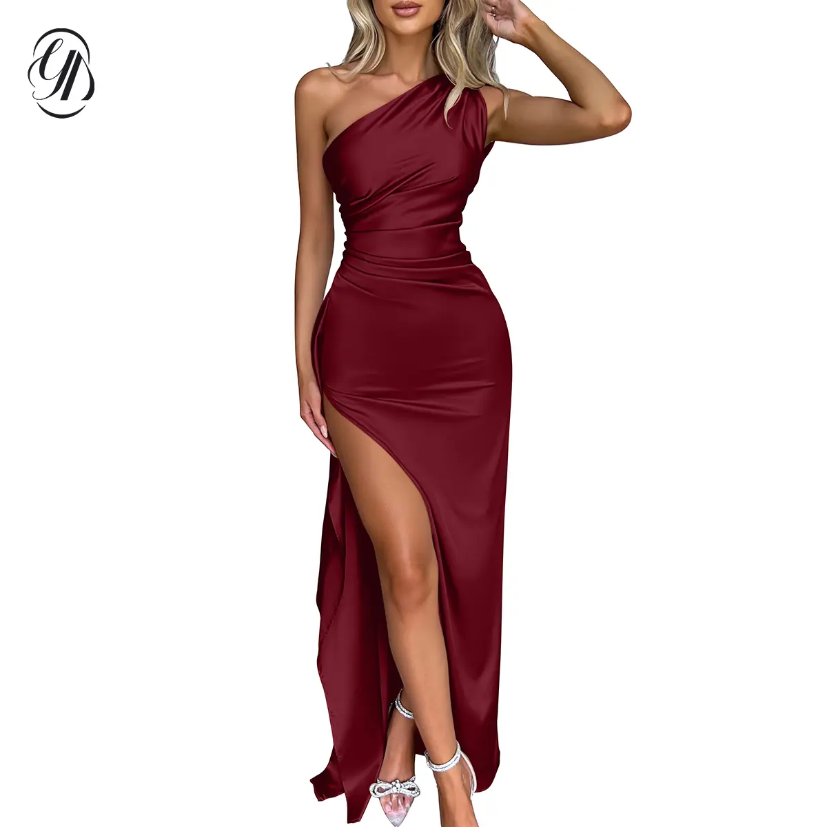 [Feature]:With draped detailing and one shoulder design,the maxi dress sweeps the floor and is complete with a high split,adjustable back strap detail.