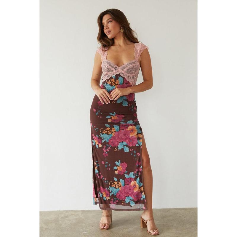 5. Mimi Lace Trim Floral Mesh Maxi Dress