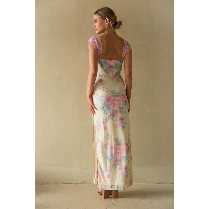 Mimi Lace Trim Floral Mesh Maxi Dress