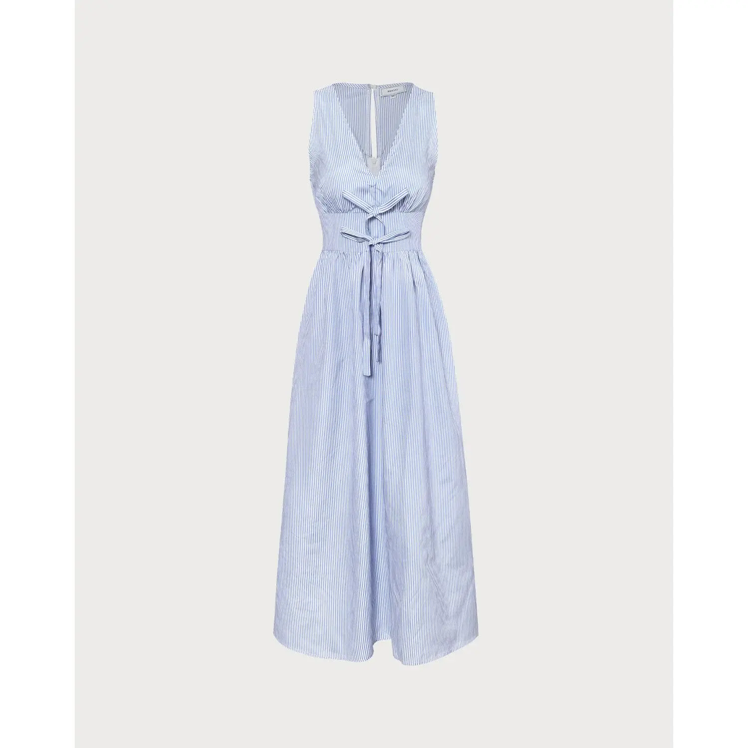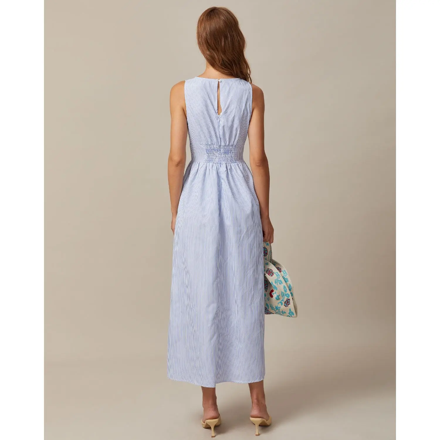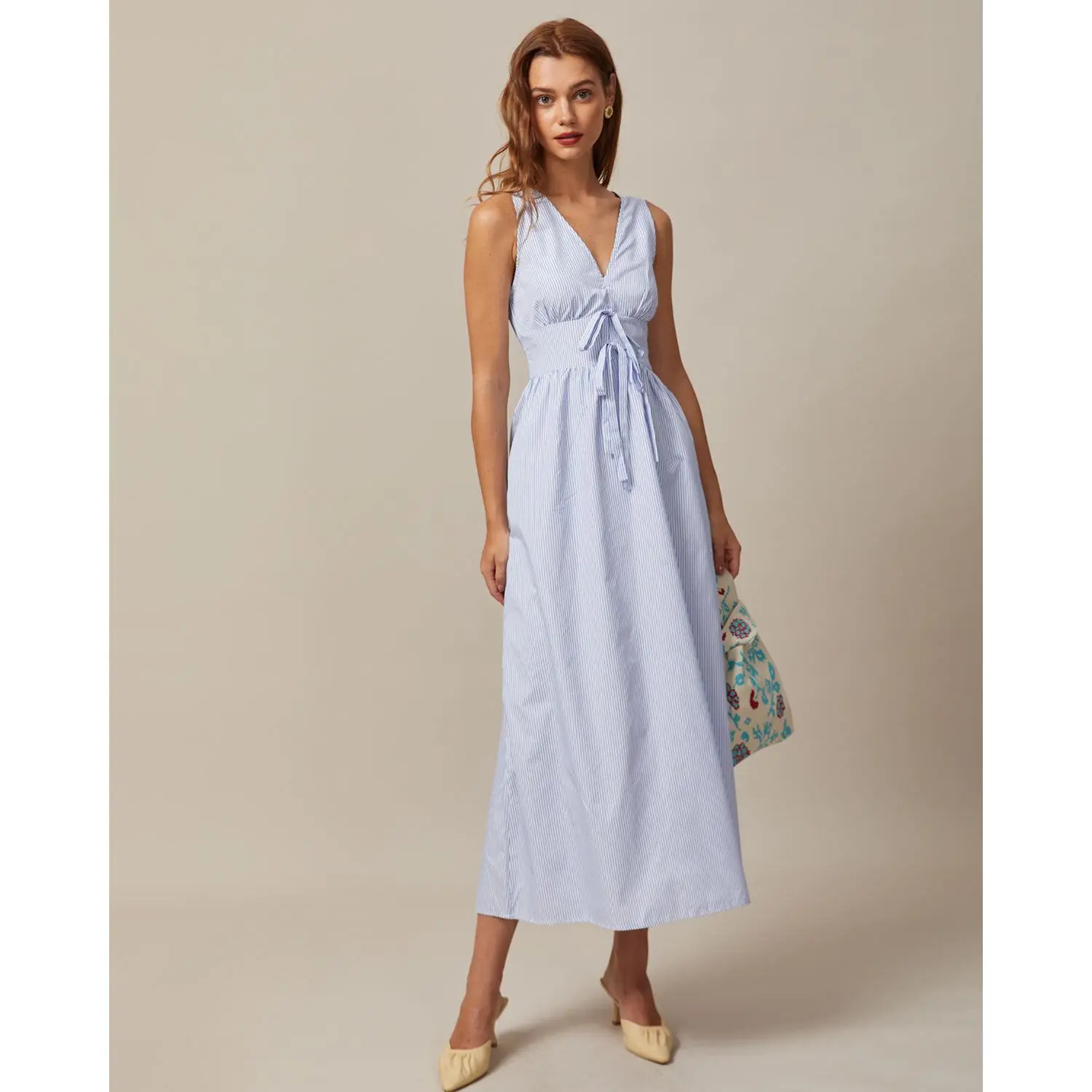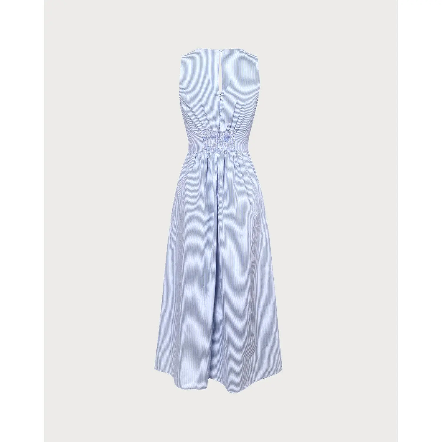 The Blue V Neck Shirred Striped Maxi Dress
