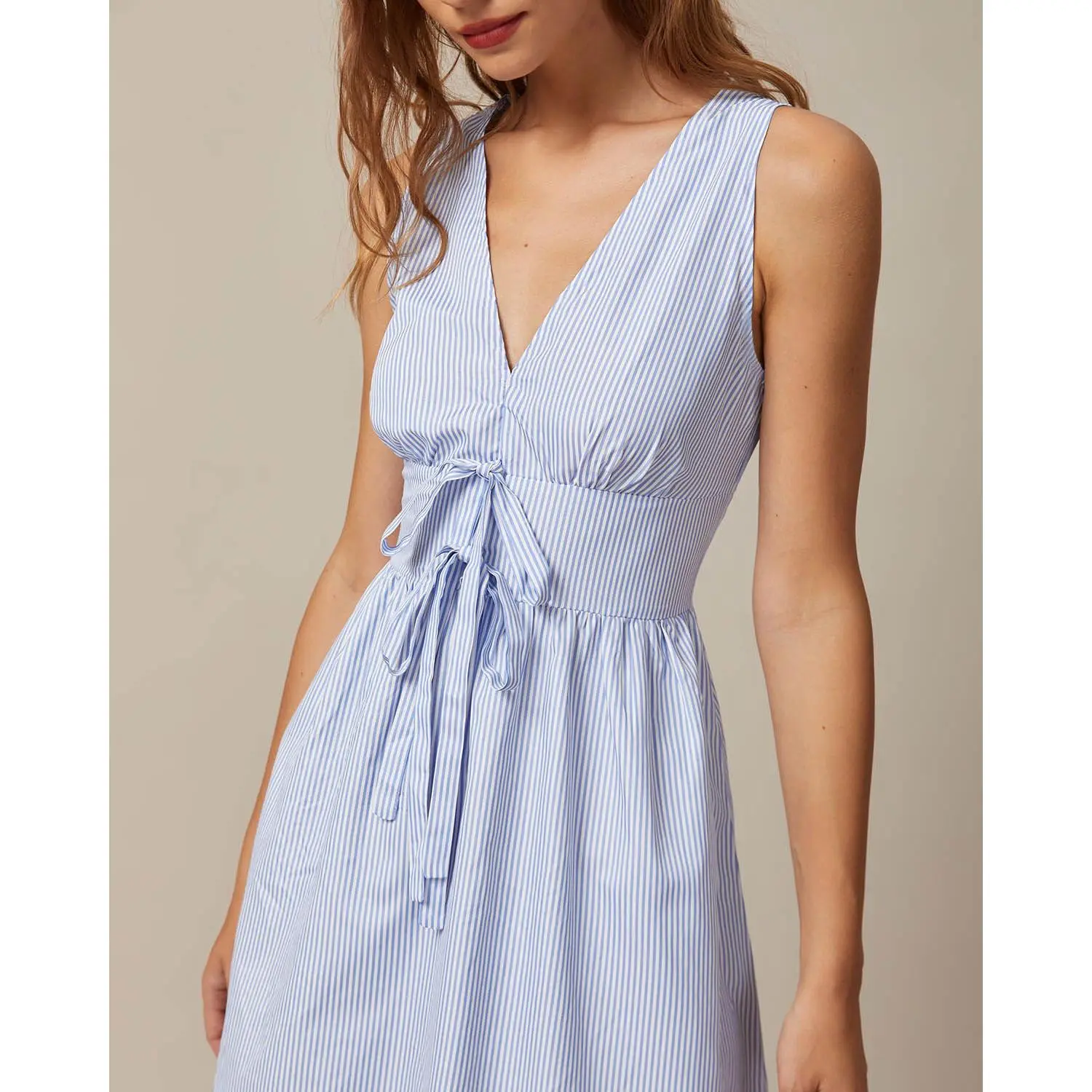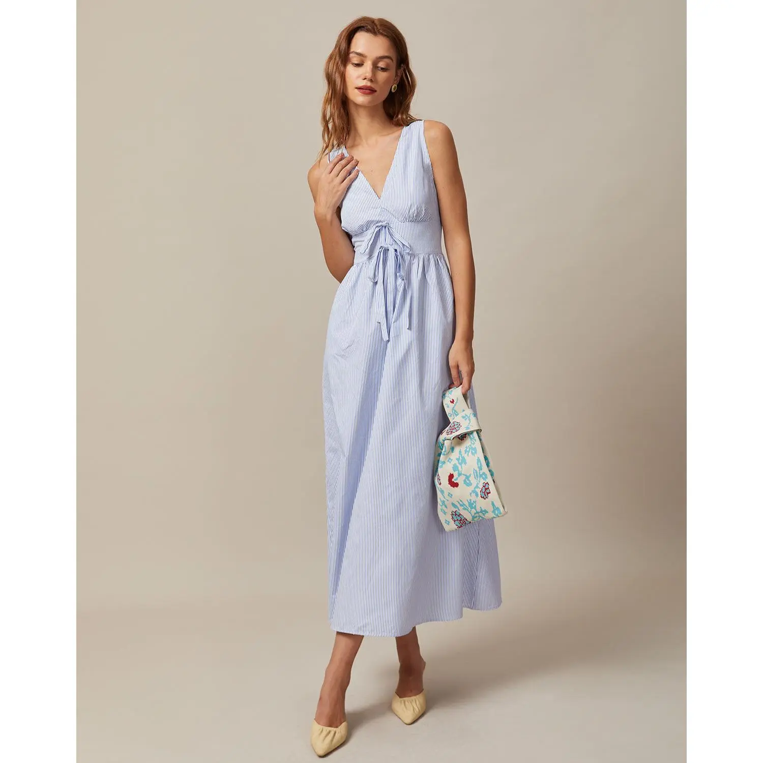 Fabric:This Shirred Maxi Dress is made of Polyester. Polyester is an artificial fiber that feels soft, looks lustrous, and dries fast. It's also durable, with good resistance to wrinkles, stains, and sunlight. Description: This V Neck Maxi Dress is a perfect choice for any occasion. Its high waisted and slim fit accentuate your curves and make you feel confident and beautiful. The tie front, shirred and striped design adds a feminine touch and makes this dress perfect for any occasion. Whether you're going out on a date or attending a formal event, this dress is sure to turn heads and make you feel fabulous.