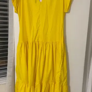 Absolutely gorgeous and perfect for the summer heat; the fabric is lightweight and comfortable. The loose styling gives an airy summery feeling and it’s got pockets! I love it!
