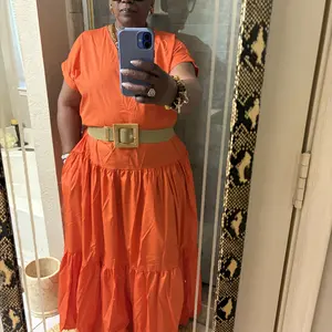 Upgrade your wardrobe with this orange maxi dress. It boasts loose short sleeves, a pleated design, and handy pockets. The split-joint V-neck adds a chic touch. Ideal for casual outings, this dress is made from a cotton blend. Machine washable for easy care. Perfect for women seeking comfort and style.