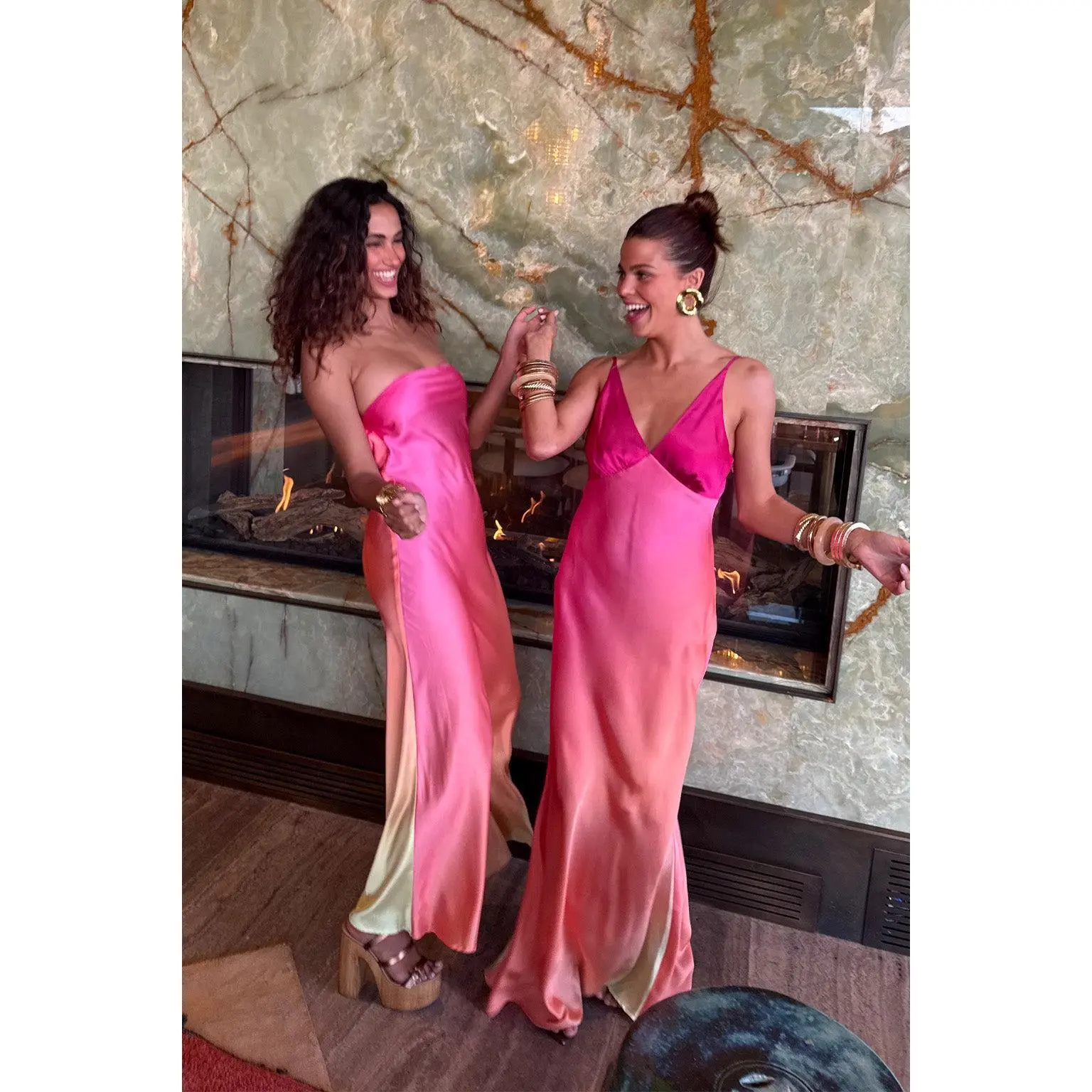 Silky tequila sunrise dress 💗🧡💛