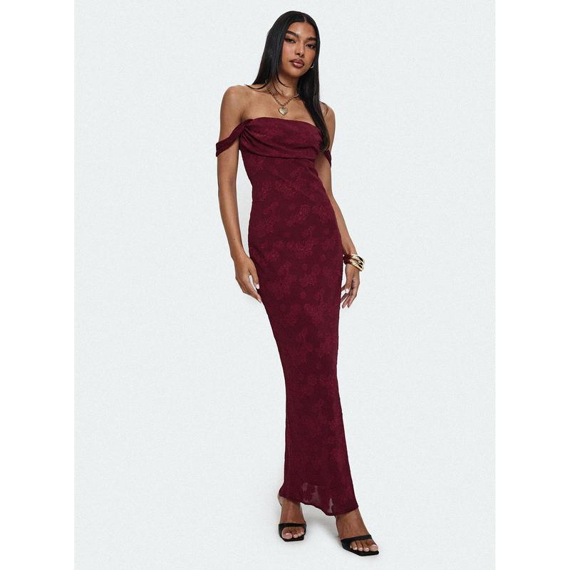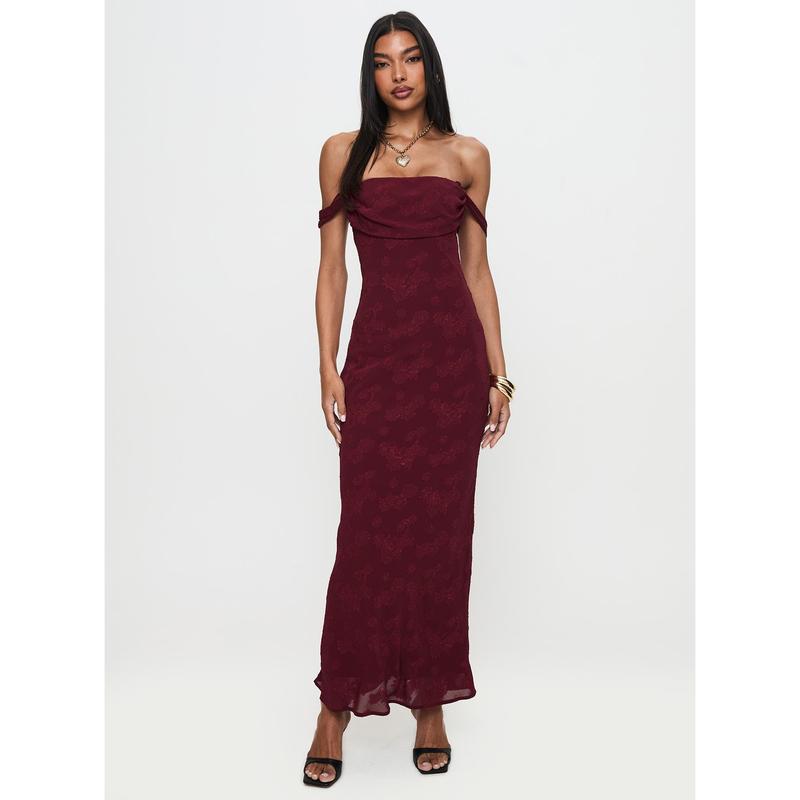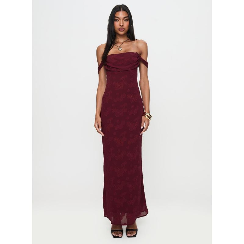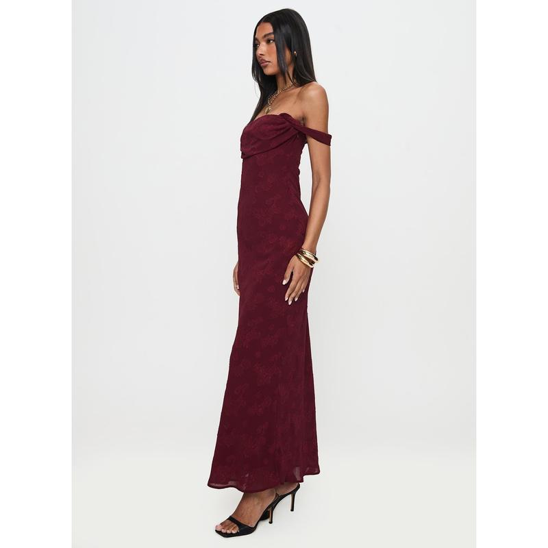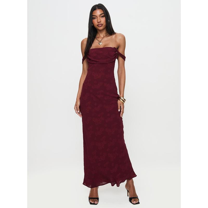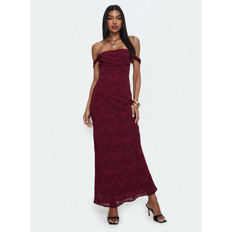 Azura Off The Shoulder Maxi Dress Burgundy