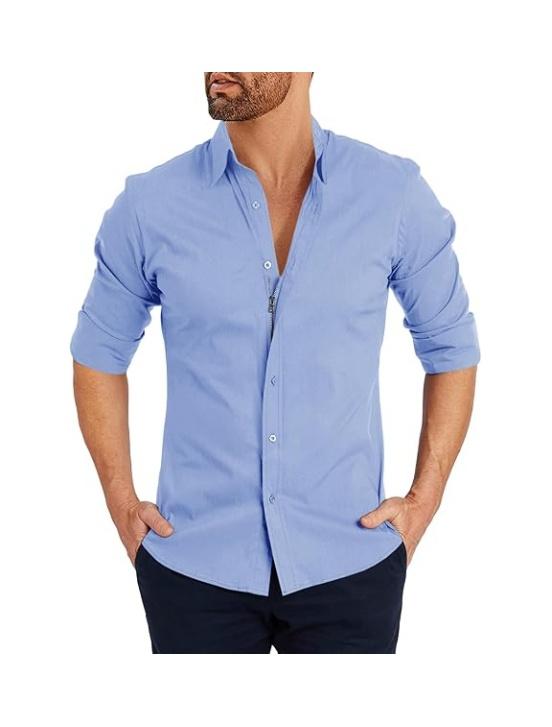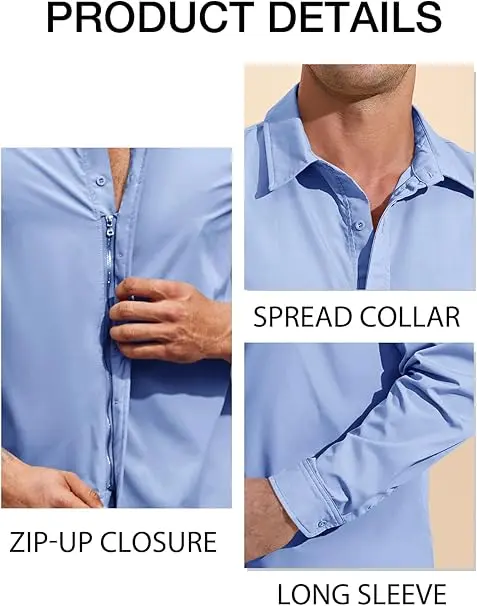 ·【Features】: This mens long sleeve button down dress shirt features spread collar, slim fit design for a modern and stylish look, zip-up closure for easy wearing and a unique combination on traditional button-down shirts. providing a sleek and sophisticated look for any formal occasion.