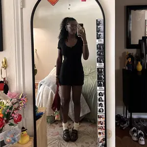 Very cute but VERY short. If you have any sort of butt you will be flashing everyone. The material feels like good quality, not super thick. Would be a great transition fall outfit. Would keep if it wasn’t so short