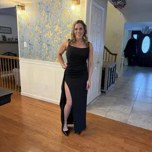 This dress is perfect!! It is elegant and sexy and fits perfectly. The slit is a little too high, but I can fix that with a few safety pins. I am 5’4 and 128lbs and purchased a small.