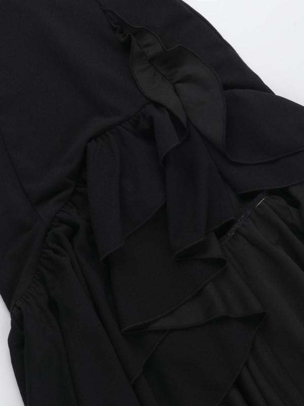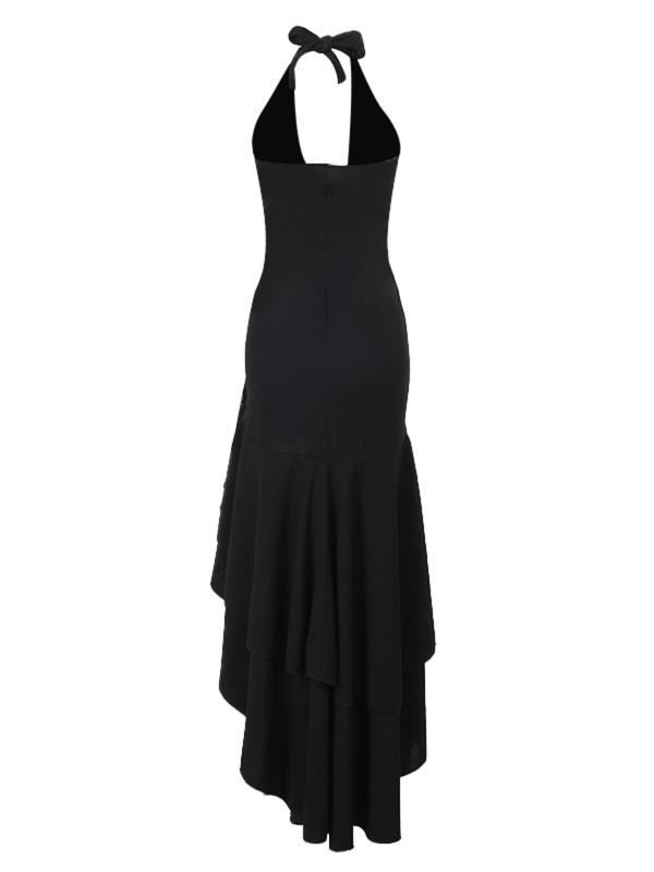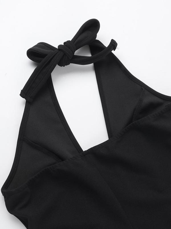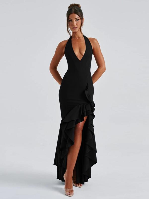 Elegant Women's Plain Deep V Neck Ruffle Trim Dress, Casual Halter Sleeveless Dress for Summer, Perfect for Daily Outdoor Wear #dresses #littleblackdress #mididress #dresshaul #blackfridaystylesteals #halloweenfashion #backlessdresses #luxurydress #womensfashionstyle #loungedresses