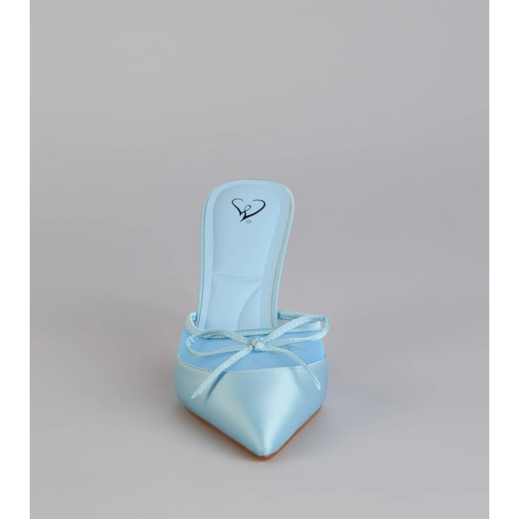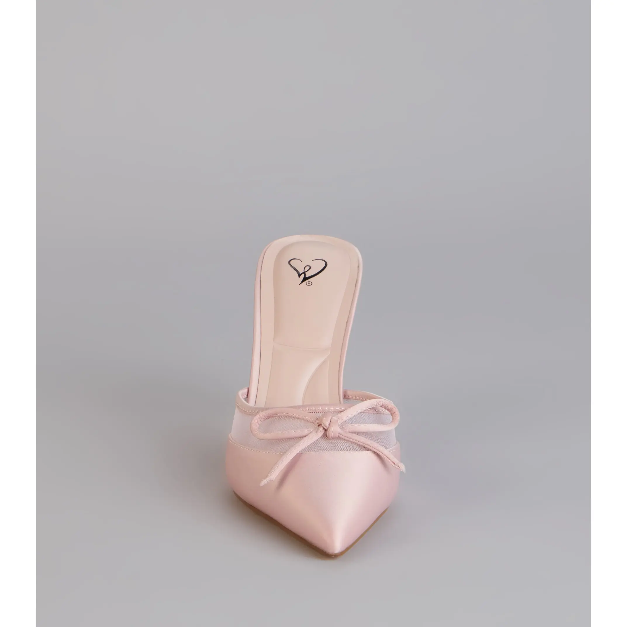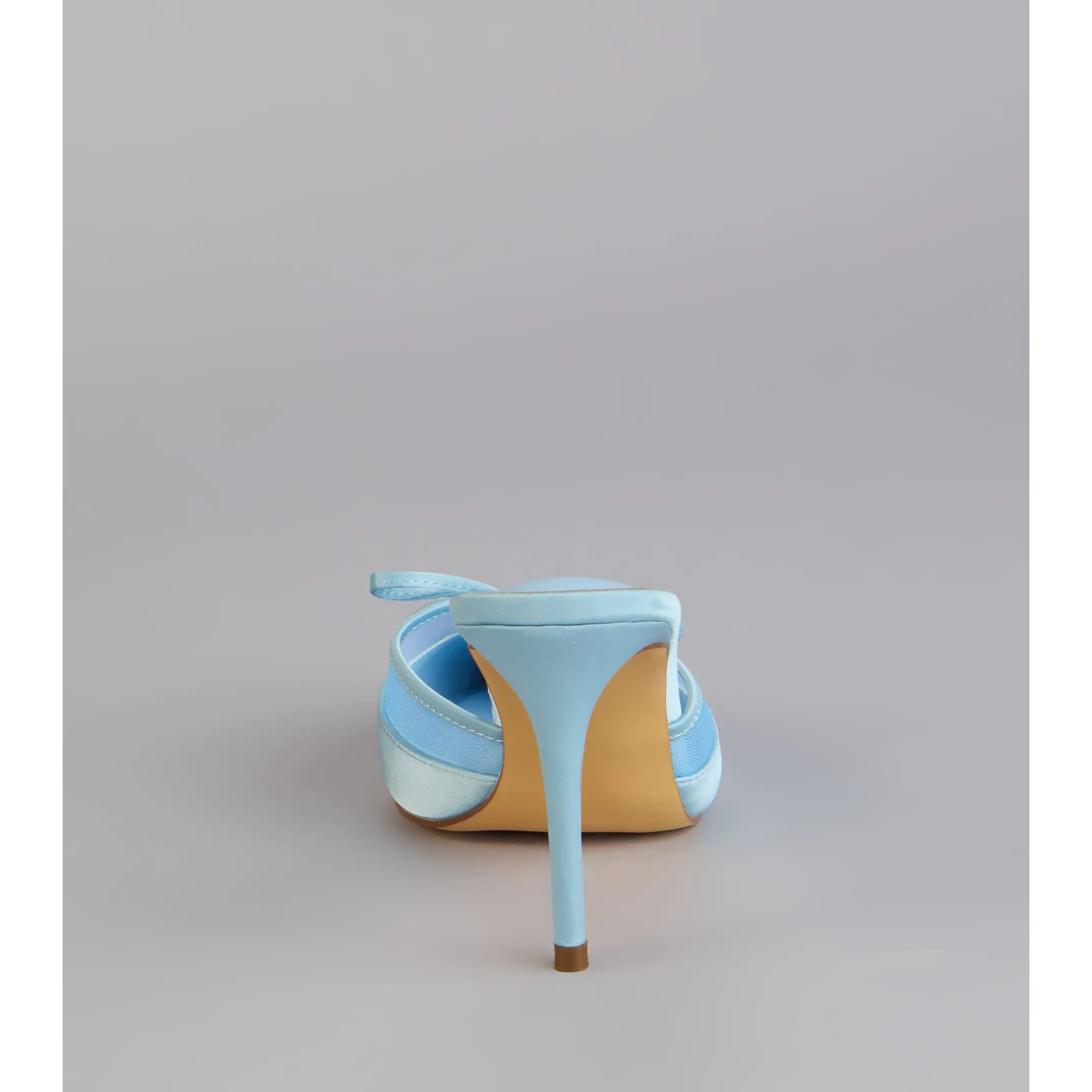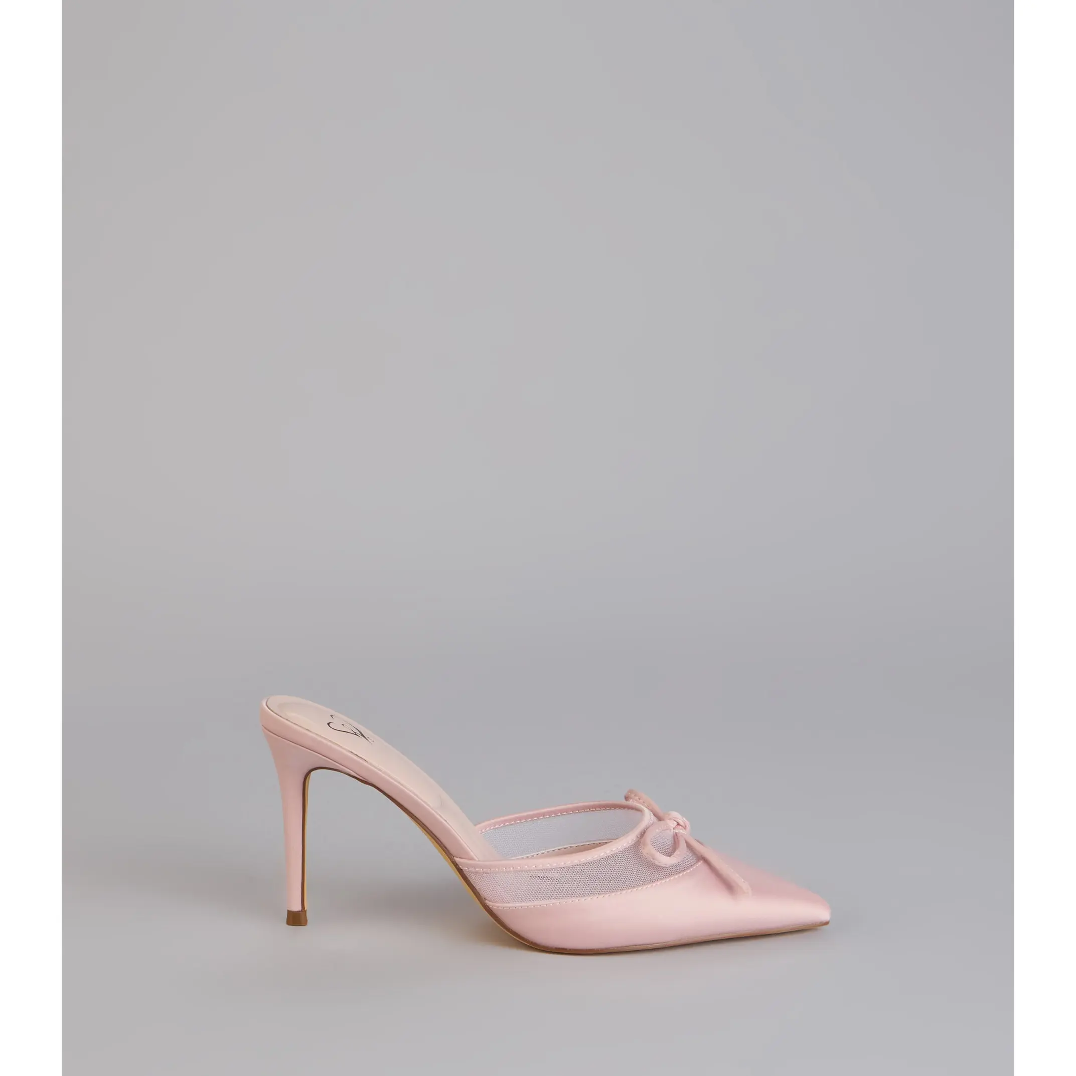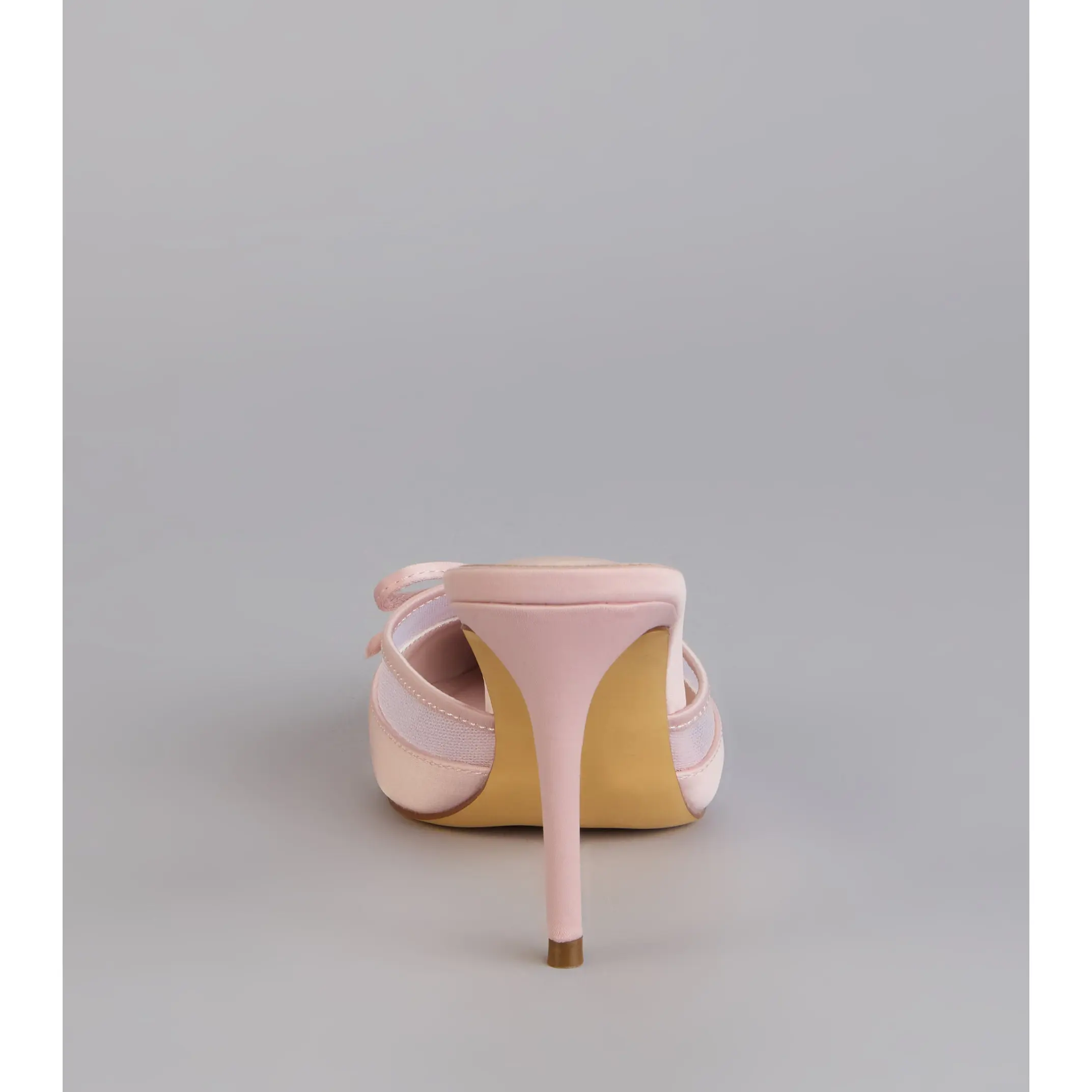 A polished finish with just enough flirt built in. The satin material pairs with sheer mesh trim, a delicate bow, and a stiletto heel that instantly dresses up dinners, events, and any night that calls for heels.