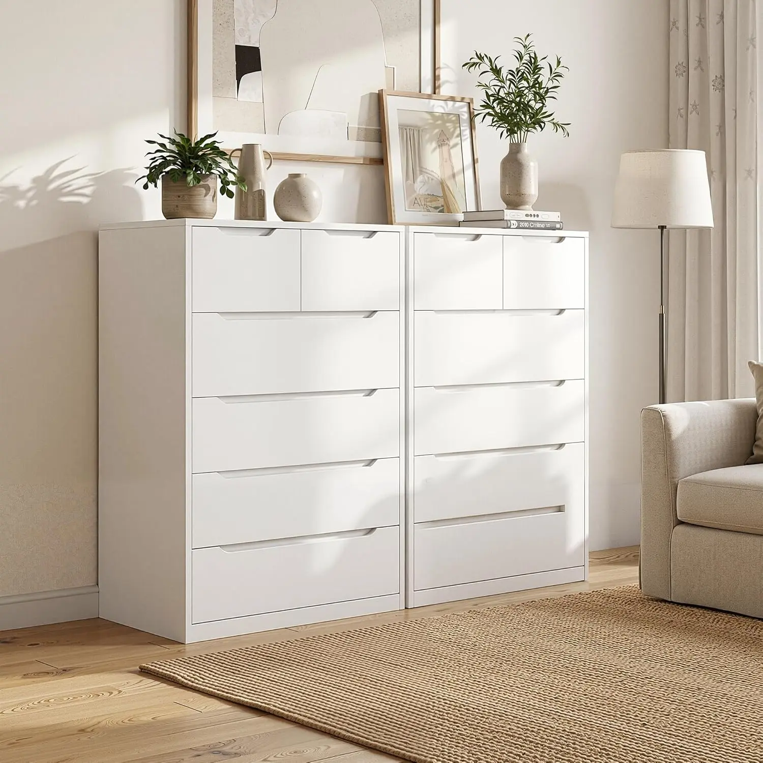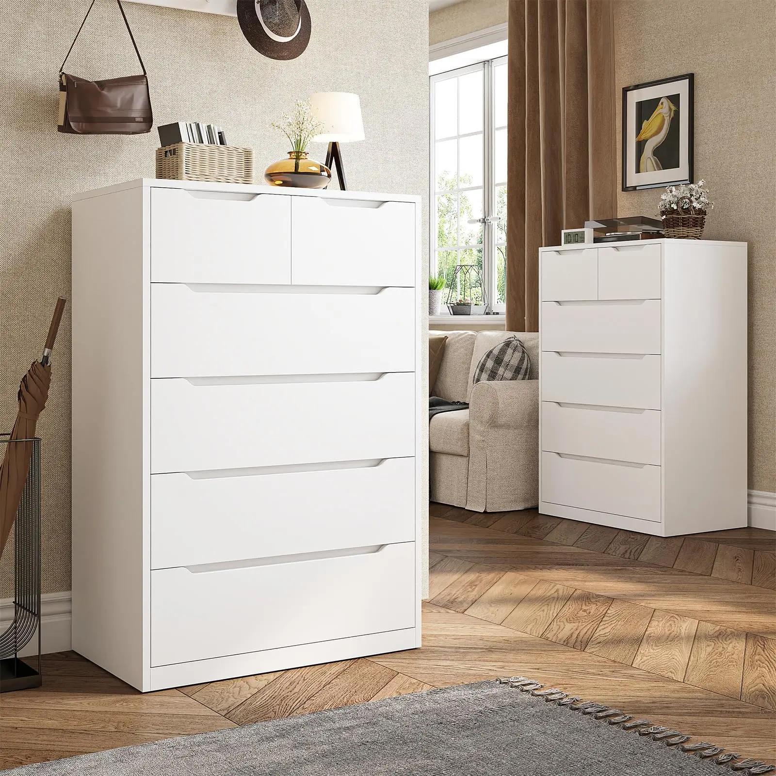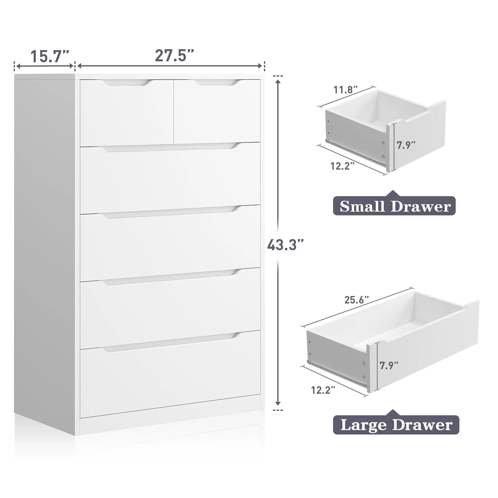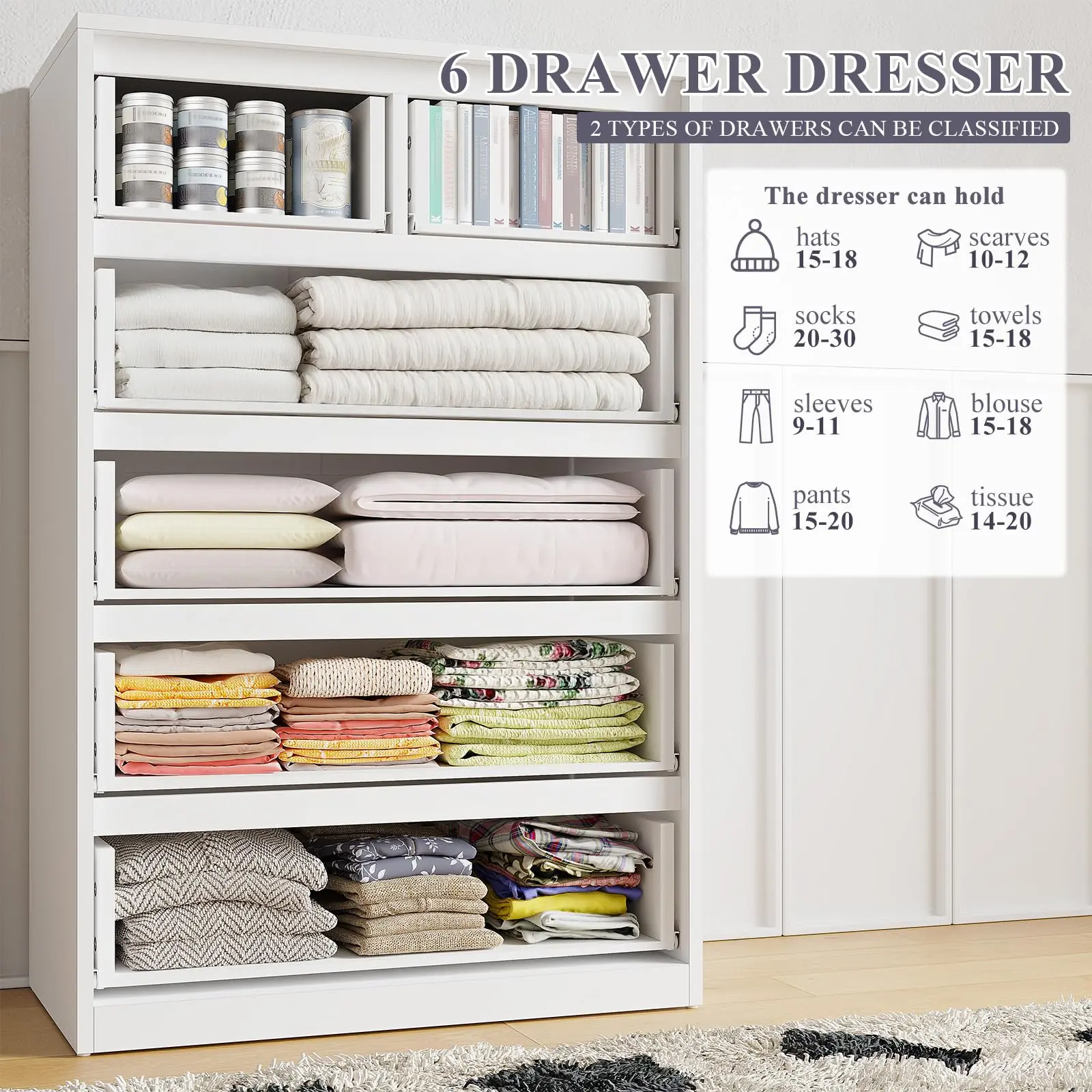 ·[Spacious and Organized Storage]---This modern dresser features 4 large and 2 small drawers, providing ample space to neatly organize clothes, accessories, and essentials while saving room space.
