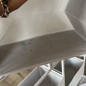 Disappointed!! Received a damaged product. Cracks on the wooden top surface . And what appears to look like mold ?? On the storage box !! Giving it a 2 star for the concept and the price but I really wished it worked for me !