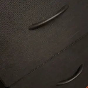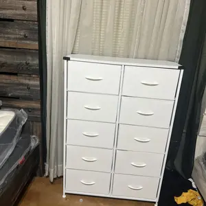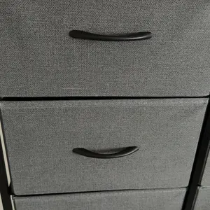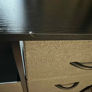 Material: 9/10 The top part is a made of synthetic wood. The draws are a thick fabric. Definitely for short term use.