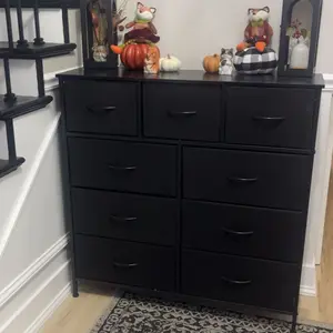 I really like this dresser. I placed it in my entryway to keep socks, hats, gloves, scarfs ect organized and readily available for my kids to find on school mornings. I love that it has handles, the frame is metal, and the top is wood