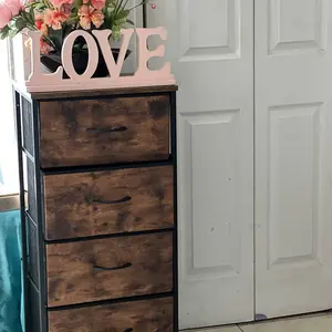 ยทใLarge CapacityใThis dresser offers sufficient space for daily necessities such as books, toys, etc. 4 large drawers are to satisfy various storage needs. The shelves are perfect for lamps, clocks without worrying about dropping. It works well in small areas while providing plenty of storage space, and mixes & matches with storage dressers or chest of drawers for a unique home style.
