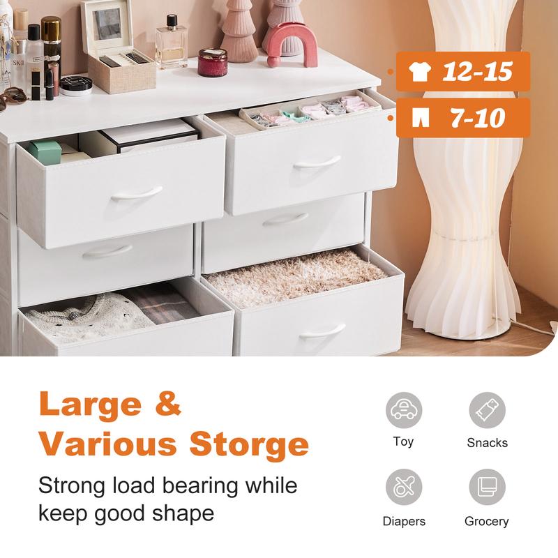 ·【PAY ATTENTION to confirm the FULL-SIZE】This dresser for the room with fabric drawers will save you space and is a great place to store such magazines or remote controls or as a children's clothing storage cabinet. The wooden panel at the top has a load-bearing capacity of up to 66 pounds and can be used instead of a TV stand.