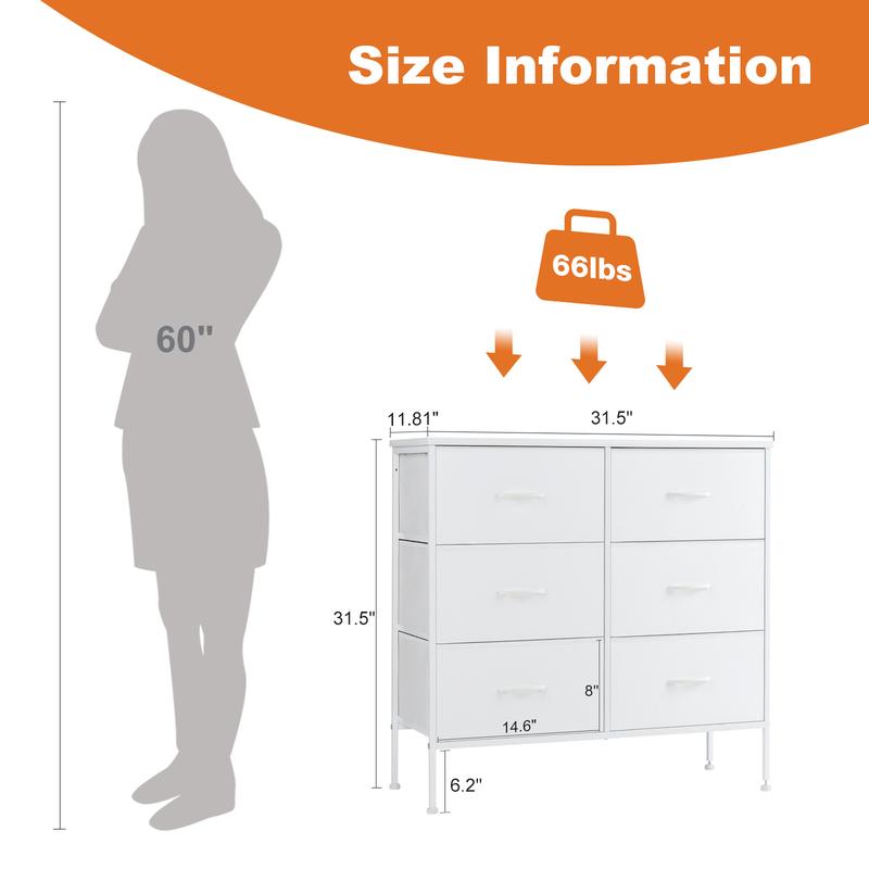 ·【Large and Storage】With 6 Big and Wide drawers, you can divide the area and get exactly what you need. The bottom space of the drawer is increased to 5" with adjusted feet, which can be compatible with most sweeping robots, and it is easy to clean. In addition, it can also place your home slippers.