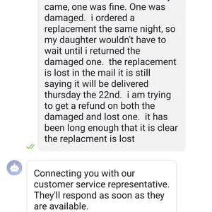 As not to make my youngest daughter wait till I was able to return the damaged one I reordered another dresser the same night. Reorder lost since last week getting no help at all