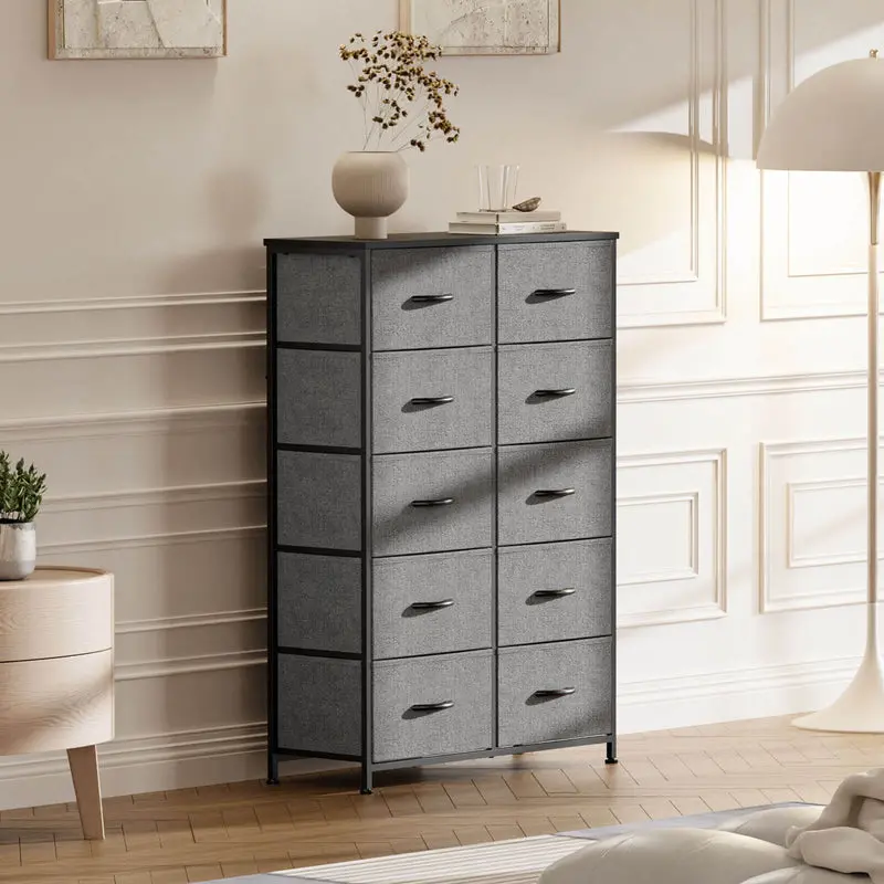 ·【Large Capacity】10 drawers are to satisfy various storage needs. The wooden top is great for keeping the most-used items within your reach. With plentiful space to organize all your belongings, your room will always be kept in perfect order.