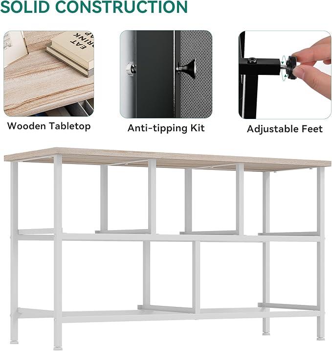 UNIVERSALLY COMPLEMENTARY- Premium light grey fabric drawers, with sturdy white metal frame and wooden tabletop; Enjoy modern scent and stylish aesthetics that easily complements various living spaces: living rooms, bedrooms, hallways, entryways, closets, etc.