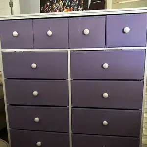 ·Large and Tall Dressers for All-Purpose Use. Quality lavender fabric drawers combine with sturdy industrial wooden top, these gives this green dresser a simple but chic appearing. Manage all season clothes with this bedroom dresser in closets or bedroom, use it as nursery dresser to stock diapers or powdered milk, load sundries close to doors or near the entryway.