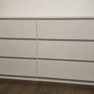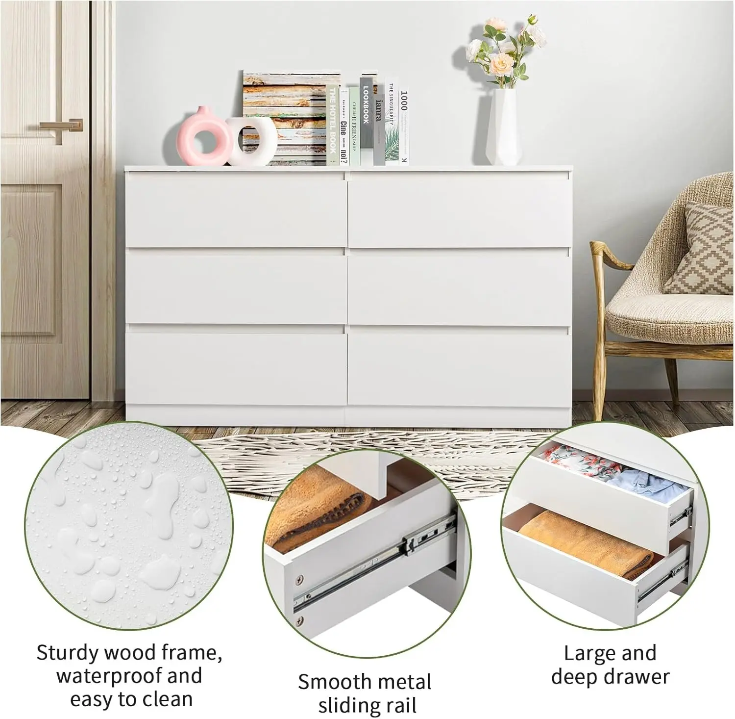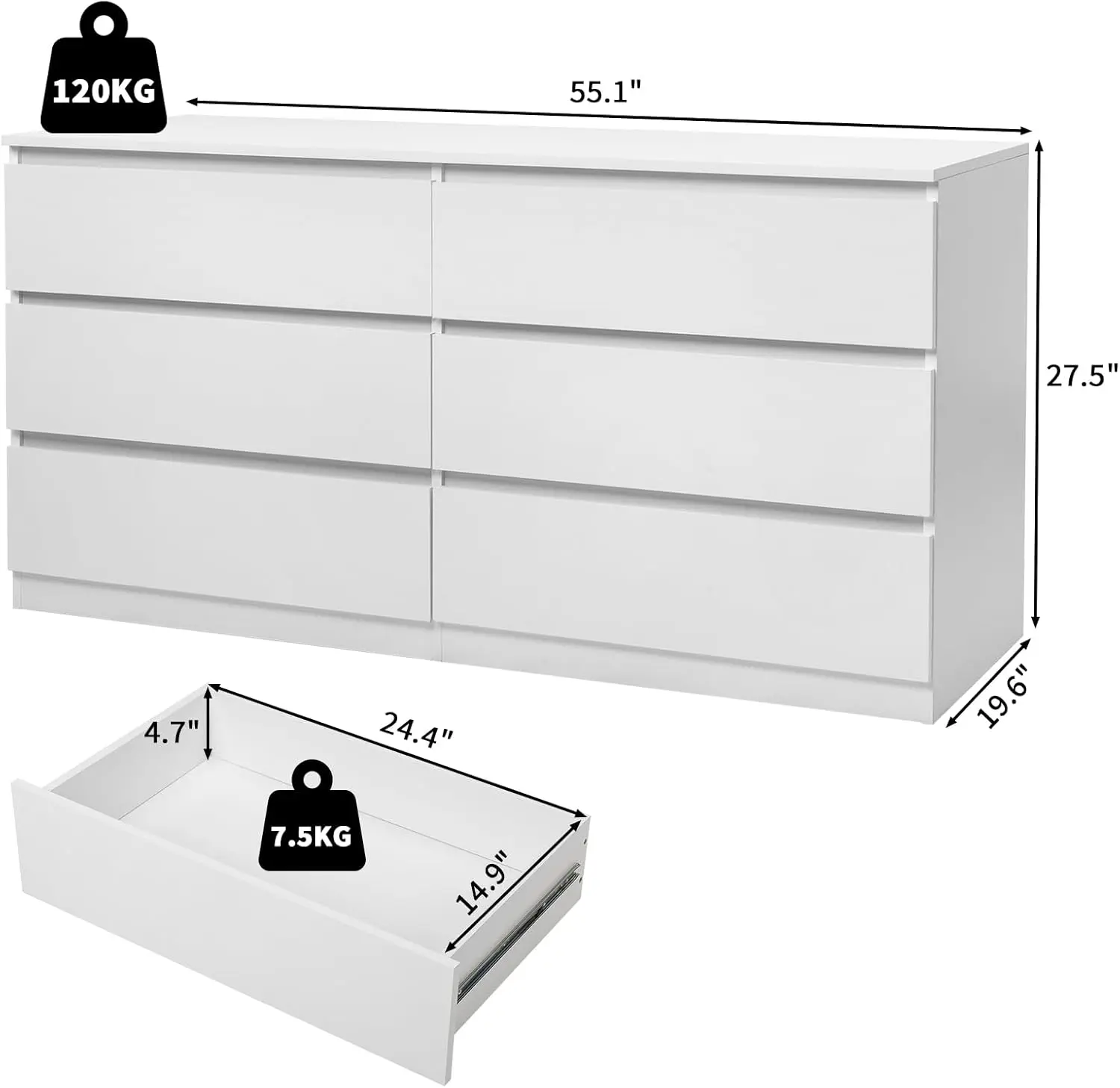 Introducing the FCH 6-Drawer Double Dresser, a compelling blend of modern design and stellar functionality. Crafted from robust P2 class particle board, this dresser offers durability and strength for everyday use. Flaunting a chic white finish, it is an exquisite addition to your bedroom, living room, or entryway. Its wide drawers provide ample storage space for your belongings, ensuring your home stays clutter-free. Organize in style with this versatile piece that marries aesthetic appeal with practical utility.