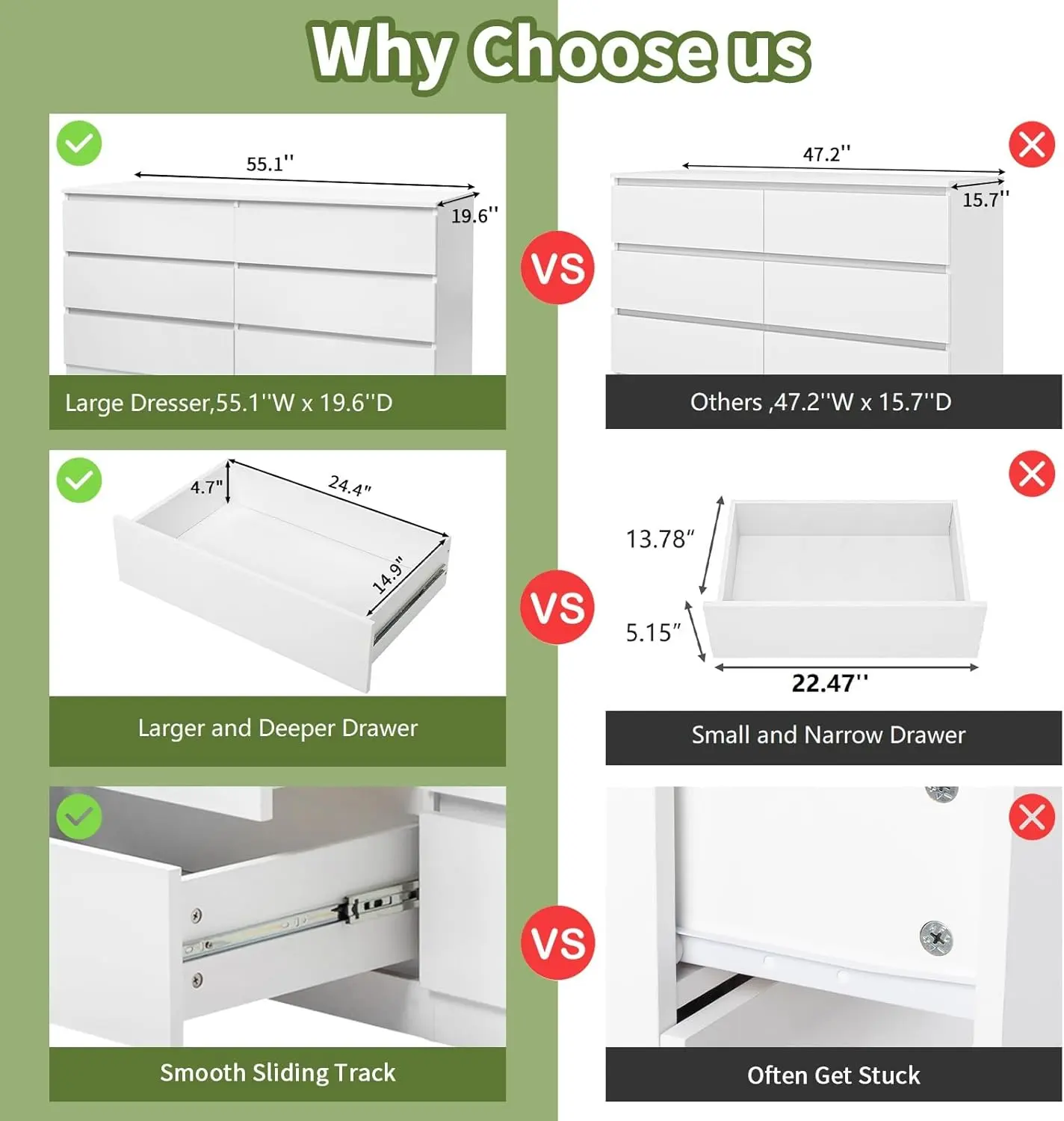 - Spacious Storage: Six wide and deep drawers, each capable of holding up to 16 lbs, allowing you to store items of various sizes.