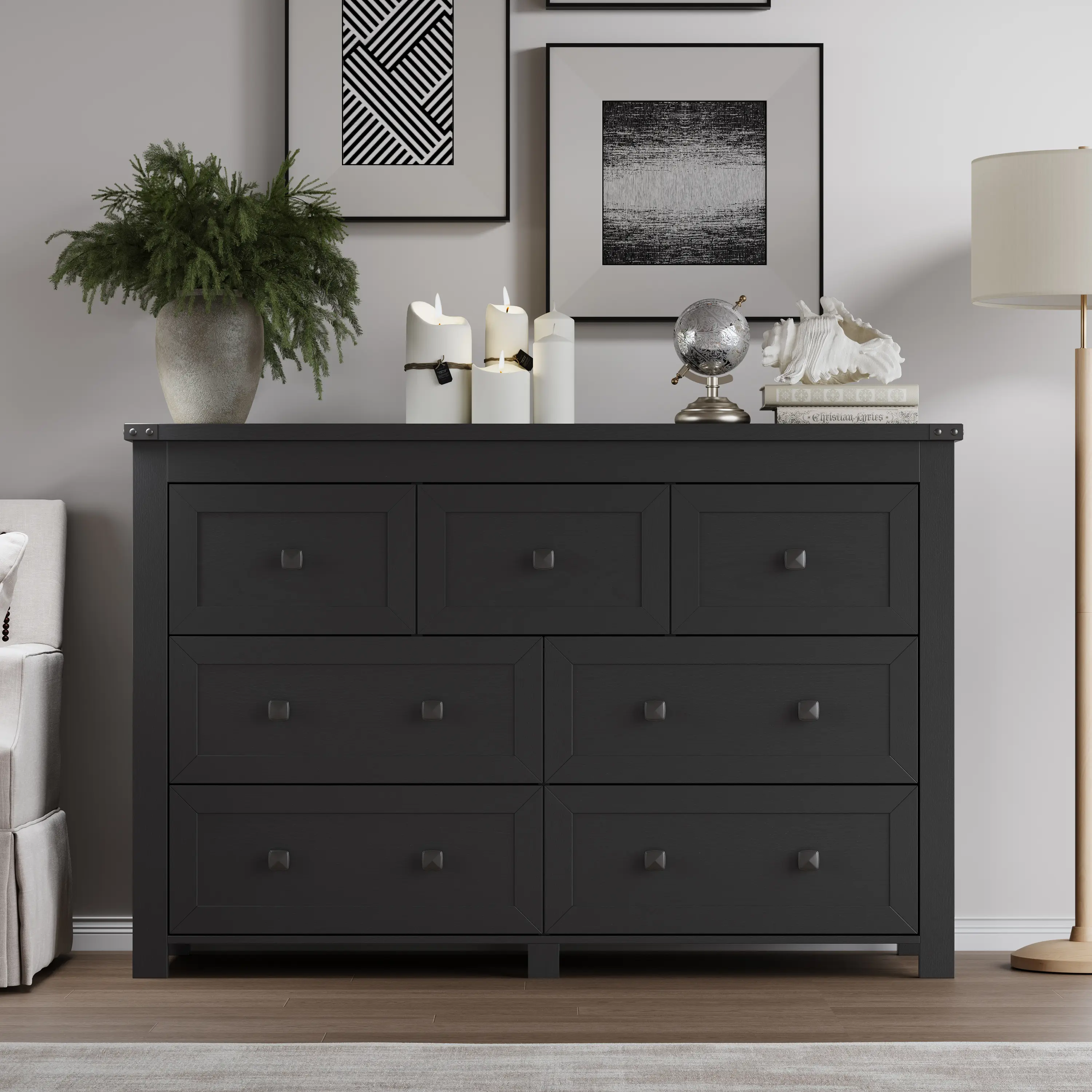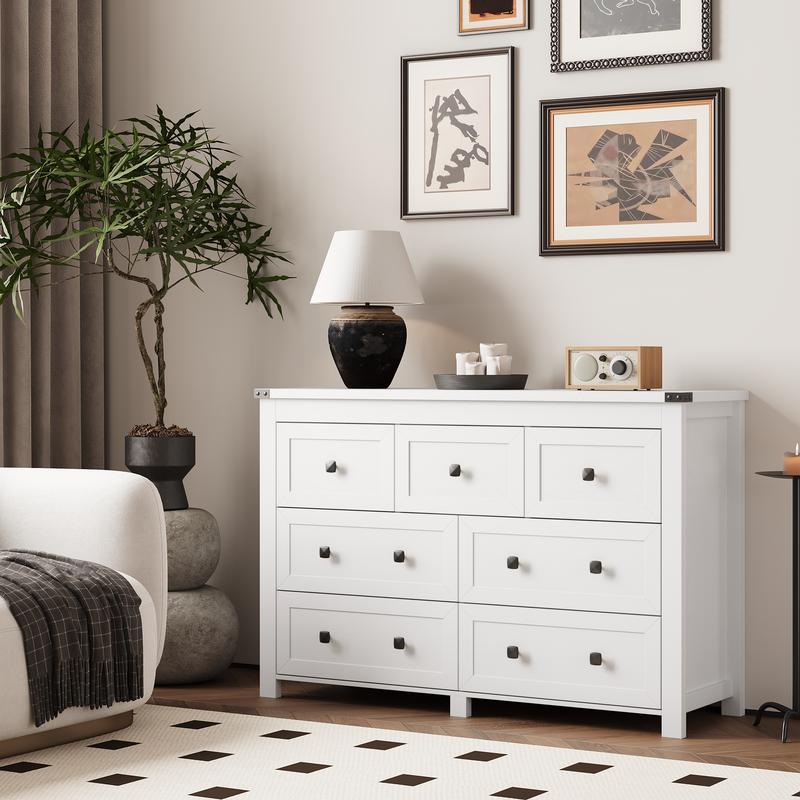 ·【Large Capacity & Multifunction】This storage chest provides you with 7 drawers, bringing plenty of space for all your clothes. It can be used as a makeup cabinet in the bedroom, a TV stand in the living room. Also, it can be put in any home corner such as the playroom, closet, hallway, entryway or bedroom