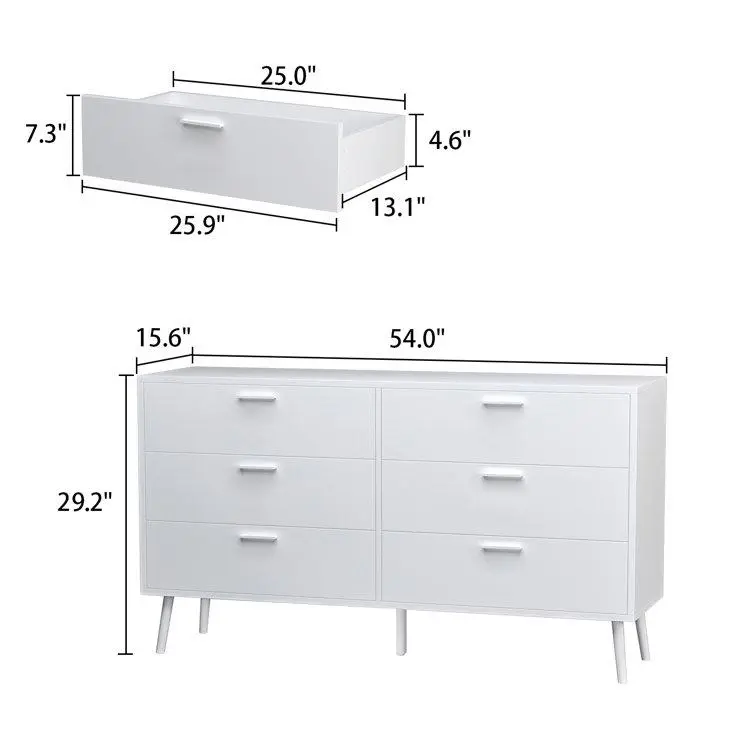 ·Large Storage Capacity - The 54-inch dresser comes with 6 spacious drawers, each with a depth and width of 13.1 inches and 25 inches, providing abundant space to store your clothes, underwear, and household items. The large tabletop has enough space to display clocks, decorations, potted plants, photo albums and more.