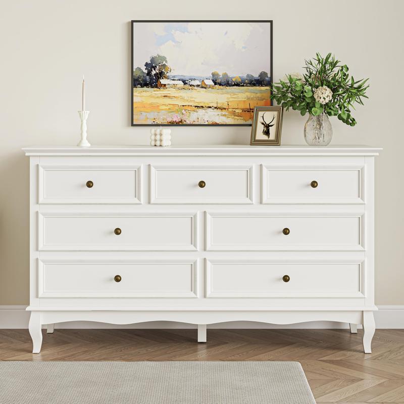 【Versatile Water-Resistant 】 Crafted with water-resistant painted material, 7 drawer dresser not only repels water but is also easy to clean, ensuring hassle-free maintenance for your home. This design isn't limited to just bedrooms; it seamlessly transitions into bathrooms, creating a neater and more convenient space.