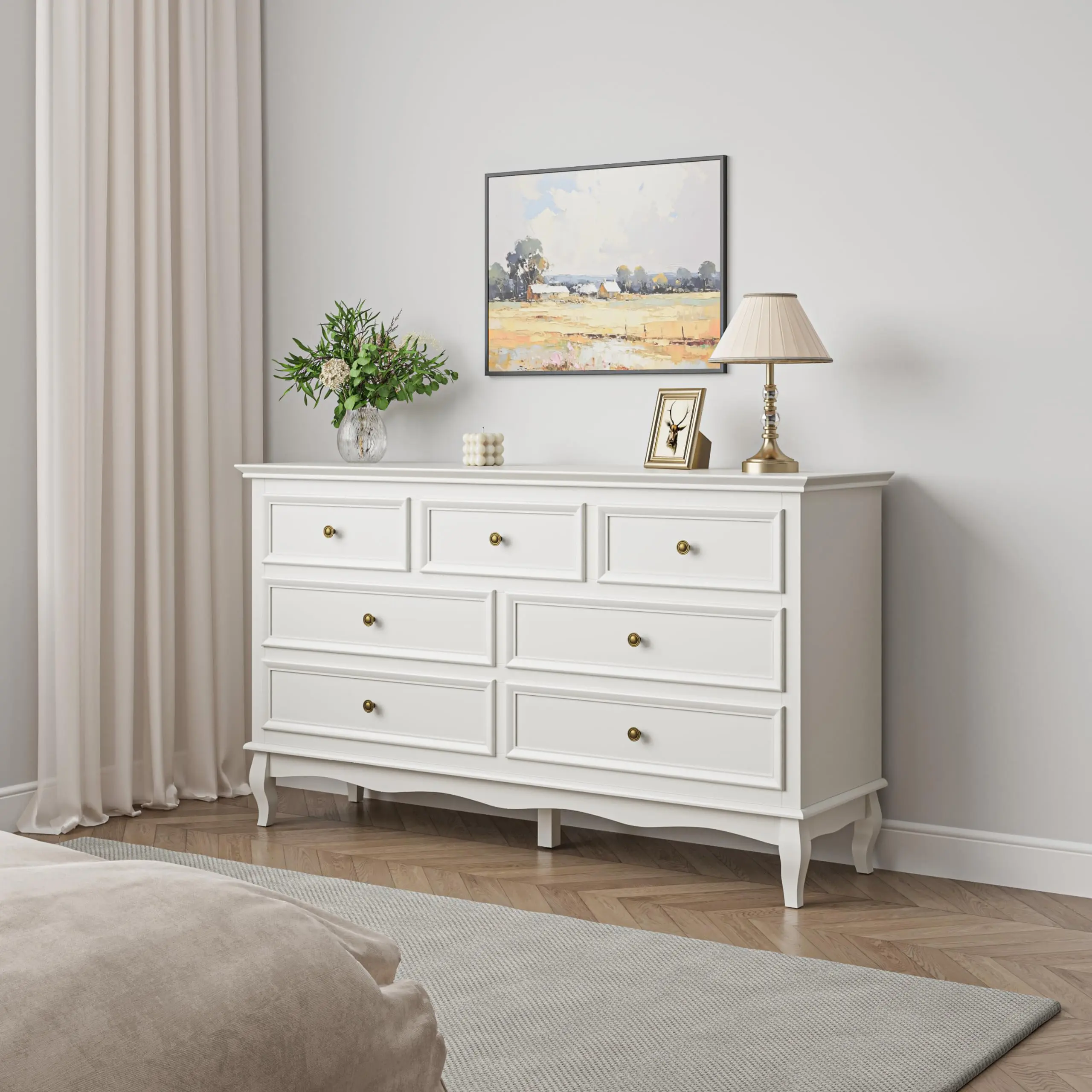 【Friendly and Odorless】 Constructed with sturdy P2 certified MDF and ASTM eco-friendly paint , this modern white dresser ensures durability and environmental consciousness, creating a space that is both healthy and visually appealing. It can serve as the ideal housewarming gift for your family, friends, or loved ones.