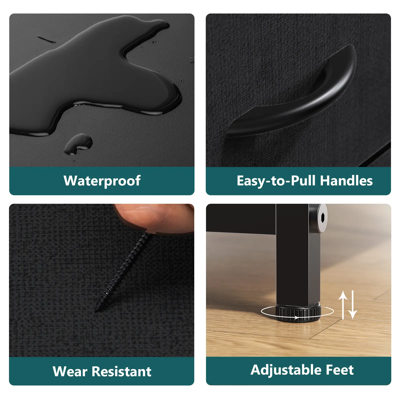 Material: the material is like fabric on the drawers but reinforced by metal as the stability.
