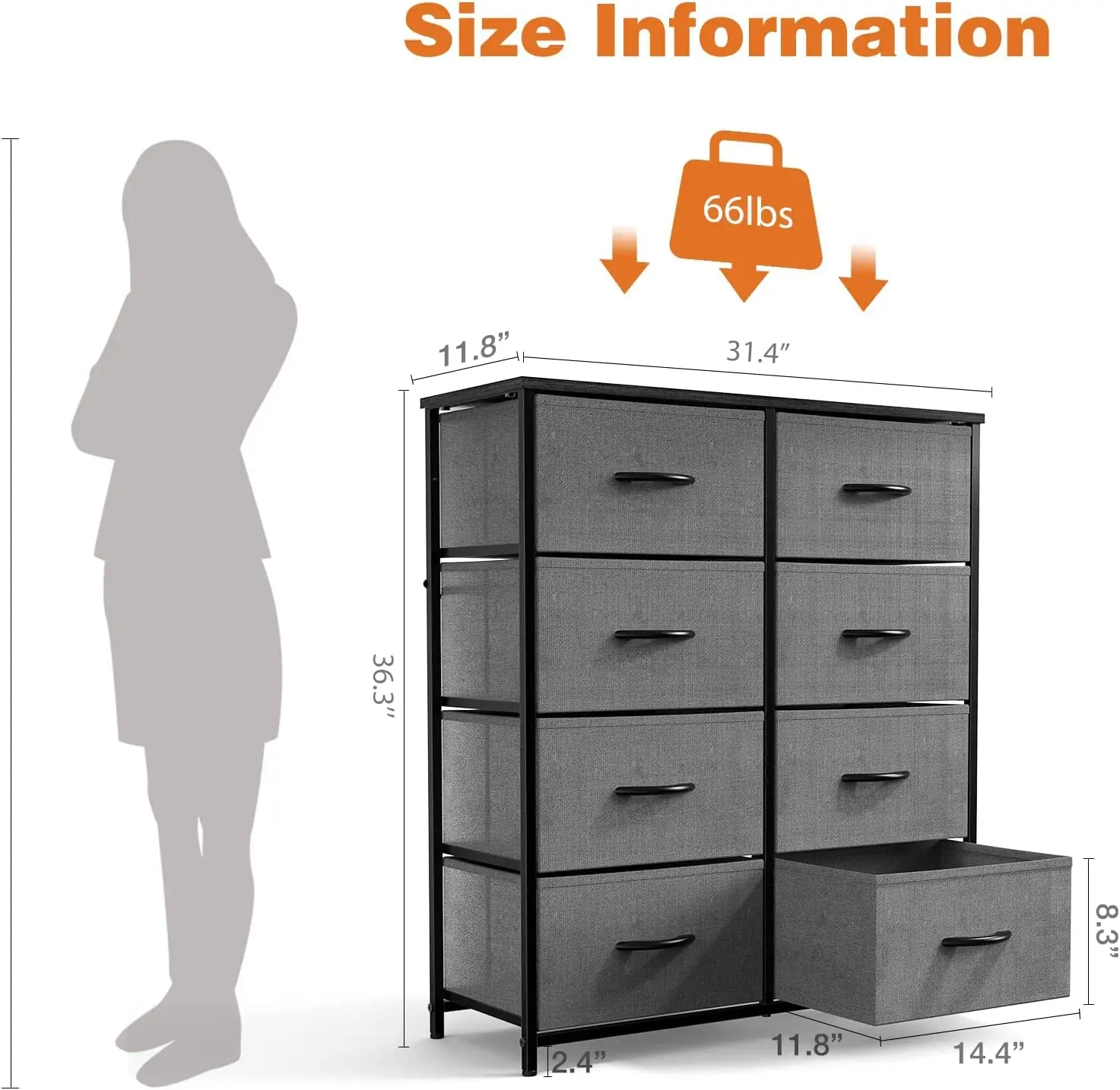 ● 【Quality Construction】This fabric dresser combines water-resistant MDF board with a durable steel frame. a cross support bar to make it sturdy under load 66lb. Anti-tipping accessories are also equipped to prevent accidents. With 4 adjustable feet, you won’t have to worry about stability, and it is also adaptable to different spaces.