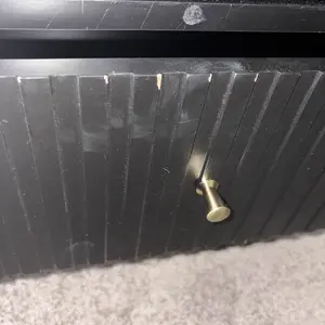 Everything about this dresser is cute except the knobs!!! The pictures show a sleek gold knob, but the knobs that were included in my package were brass and dull. Kinda disappointing considering the price$!