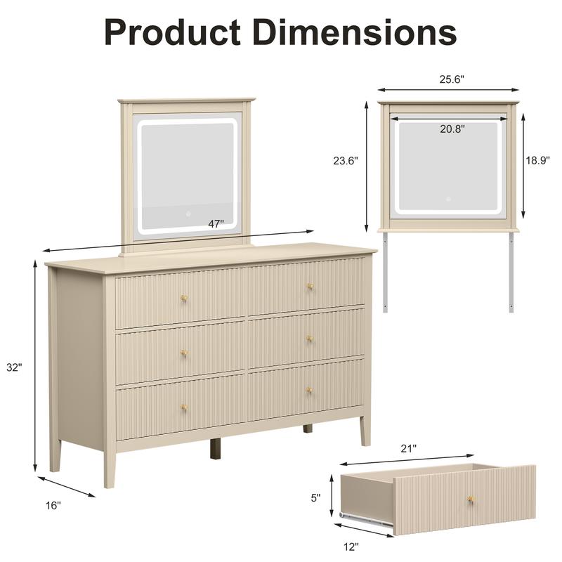 NO Mirror-6 Drawers-Beige