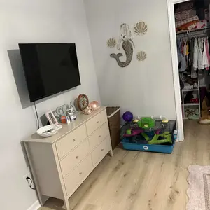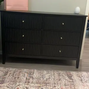 I bought this dresser temporarily for extra storage in my closet. I plan on using it in a different location in my house. It’s just as pictured and had no issues putting it together (I did it on my own). I really like the color, gold details, and how sturdy it is.
