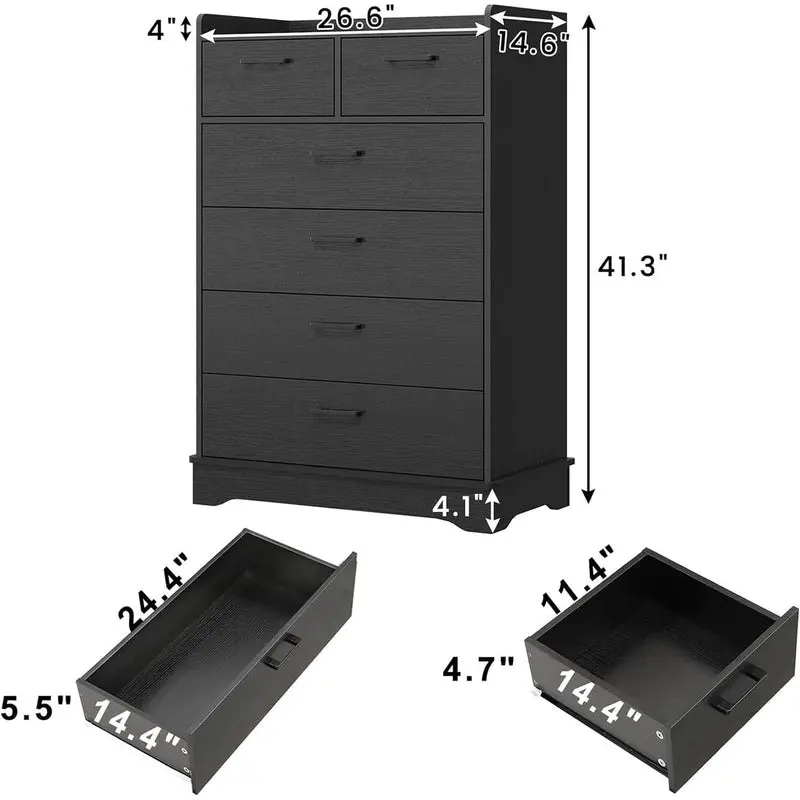 Black 6 Drawers Dresser with Category Storage for Your Bedroom
