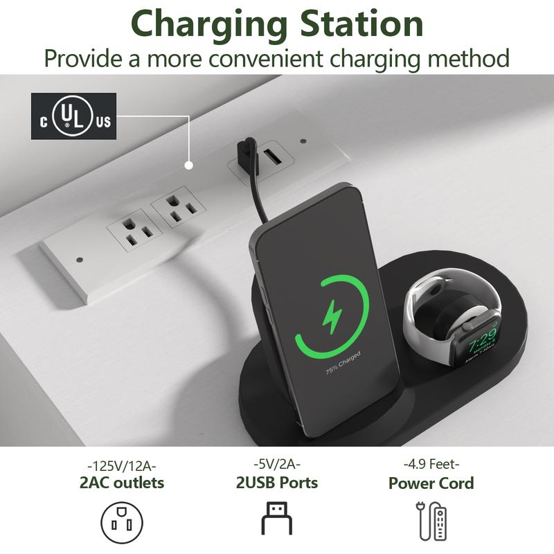 Dresser with Built-in Charging Station: This bedroom dresser includes a built-in power outlet, adding convenience for charging your devices. It features 2 AC outlets and 2 USB ports, allowing you to charge your laptop, mobile phone, table lamp, hairdryer, and other small appliances without needing extra chargers. This is particularly useful if your room has limited outlets.