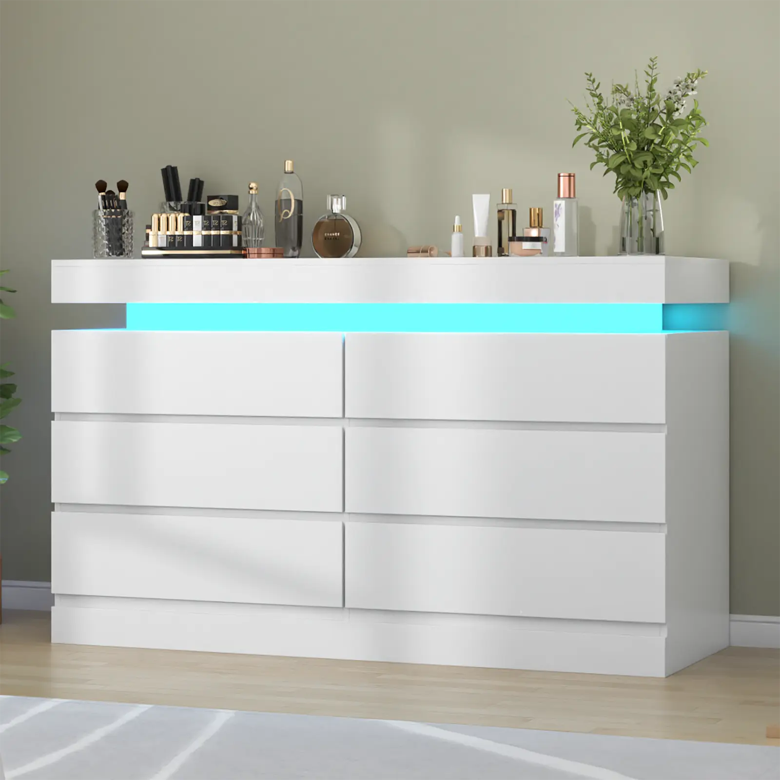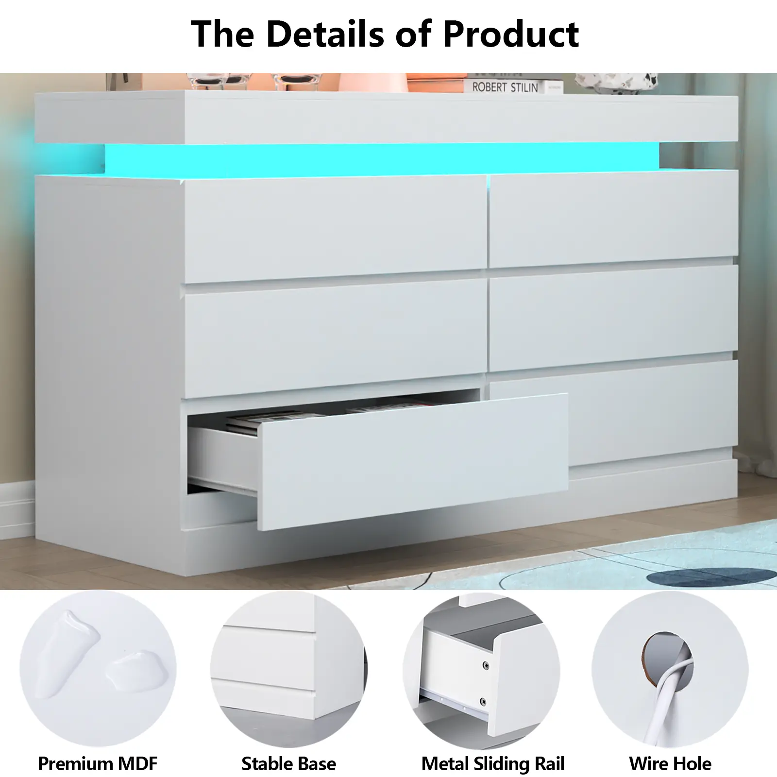 Premium Materials and Modern Aesthetic: Constructed from premium MDF with a white finish, this dresser is built for long-term use and is scratch-resistant. The six drawers glide smoothly on sliding rails, making them easy to open and close. The dresser's fashionable and simple style, combined with its unique floating design, showcases the beauty and functionality of modern home furnishings, ensuring compatibility with various decor styles.