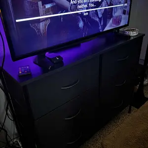 Good quality for price, easy to assemble, lightweight but durable. I am considering ordering a second to replace my existing dressers completely! The TV in the photo is 50" for reference to size