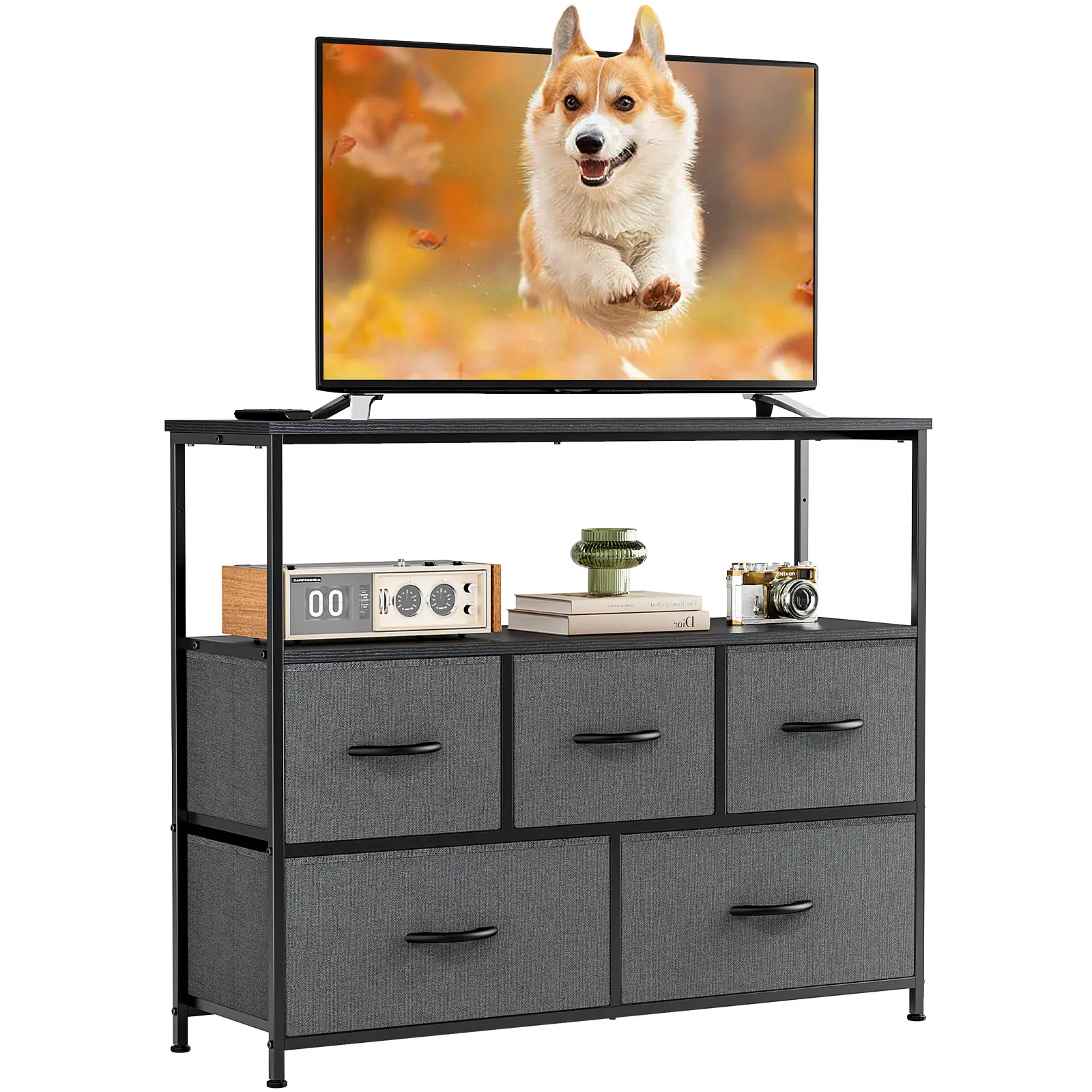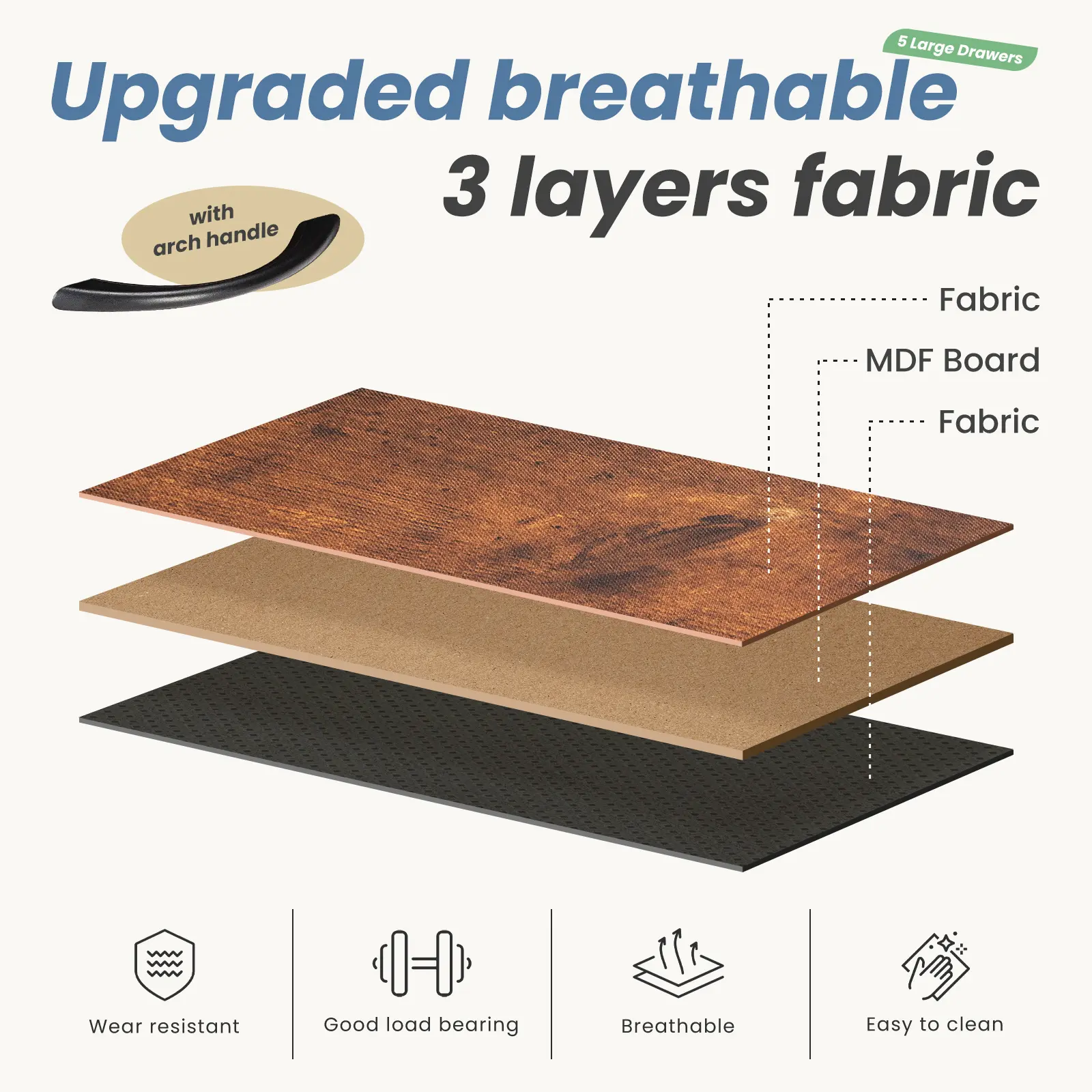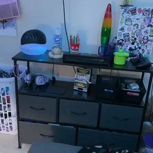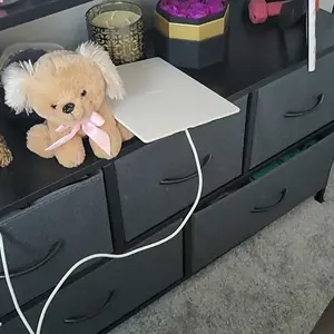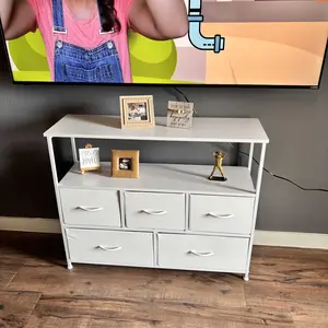 ·5 chests of drawers: 3 drawers on the upper level and 2 large drawers on the lower level. All drawers are removable, and the power storage capacity allows you to organize various items. The upper drawer can store your frequently used items, and the lower drawer can store various unused or infrequently used items to better organize your space.