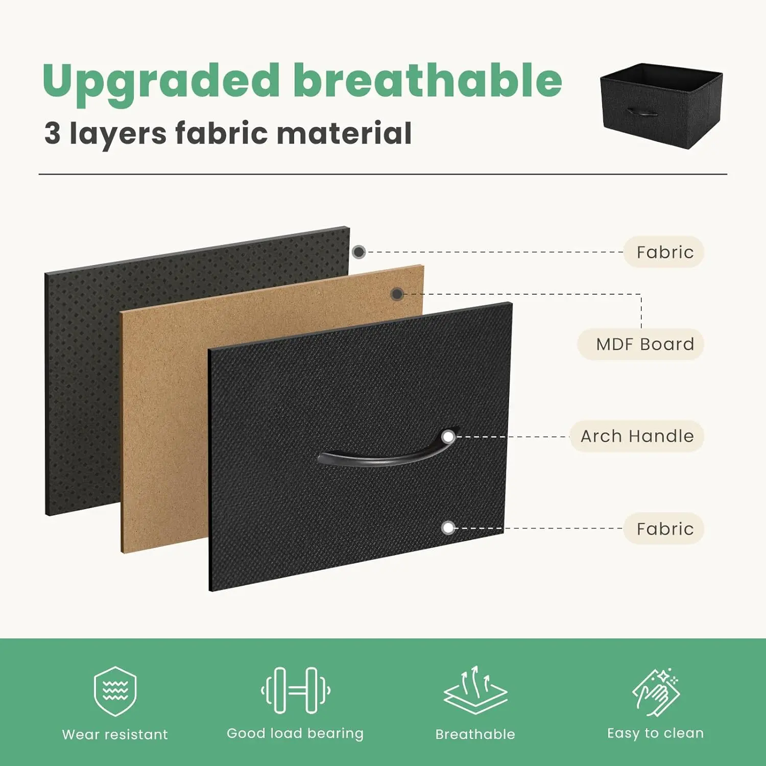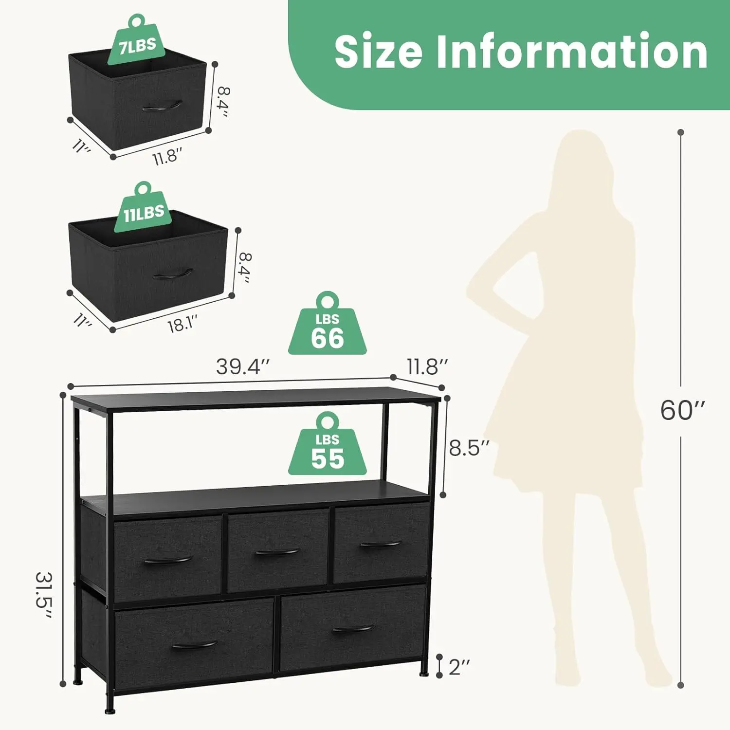 ·5 Chests of Drawers: 3 drawers on the upper level and 2 large drawers on the lower level. All drawers are removable, and the power storage capacity allows you to organize various items. The upper drawer can store your frequently used items, and the lower drawer can store various unused or infrequently used items to better organize your space.