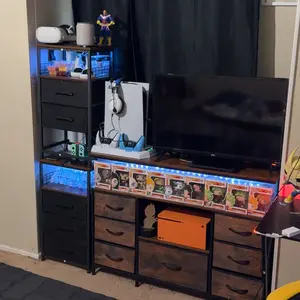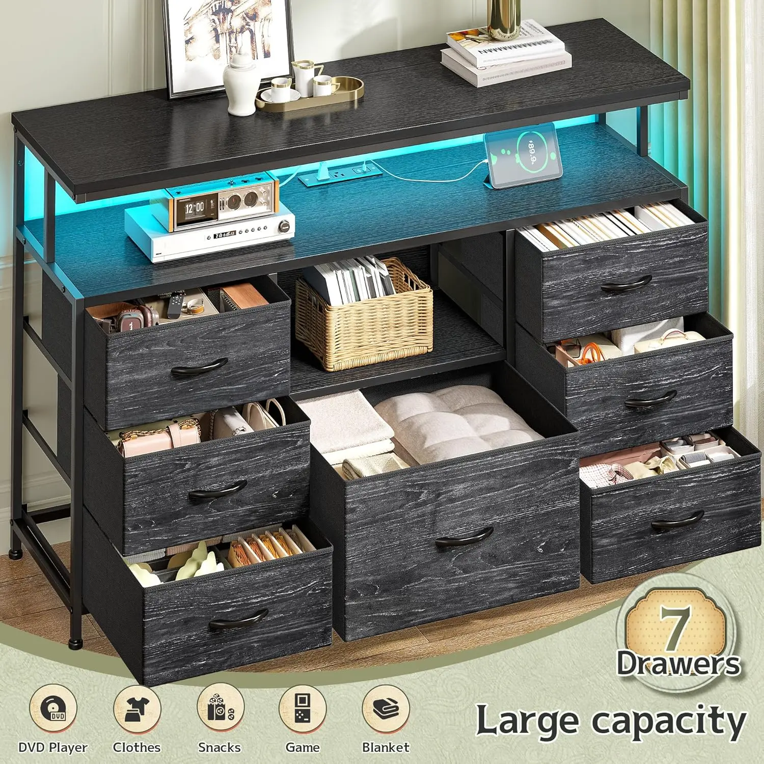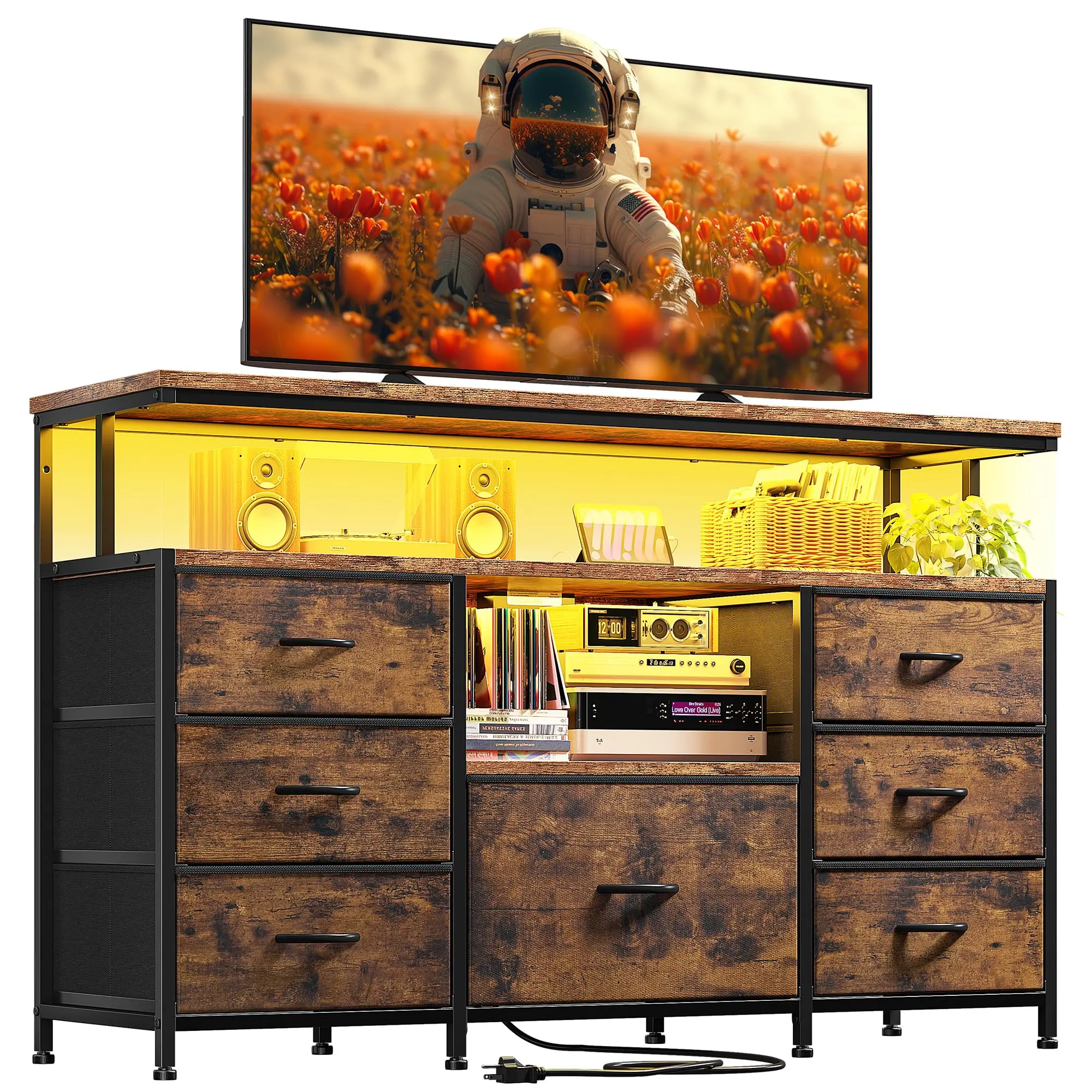 ·【TV Stand for Bedroom for 55" TV】: Dresser TV stand with 7 different size storage drawers and shelves. The drawers are made of fabric, but they are reinforced and slide in and out easily, this TV stand dress can meet any placement and storage needs you have.