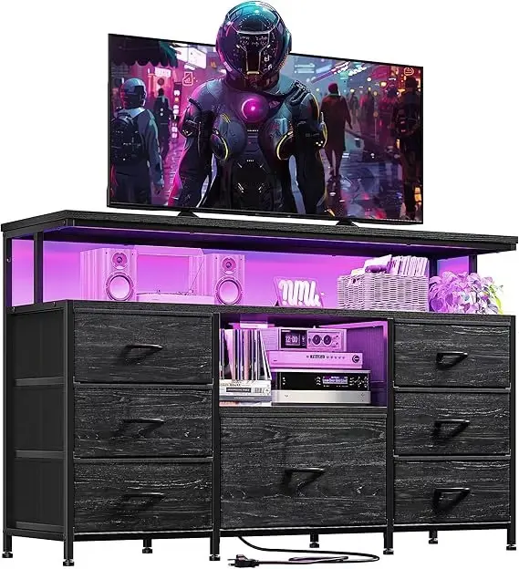 ·TV stand dresser with LED Lights & Power outlets for 55" TV Stand